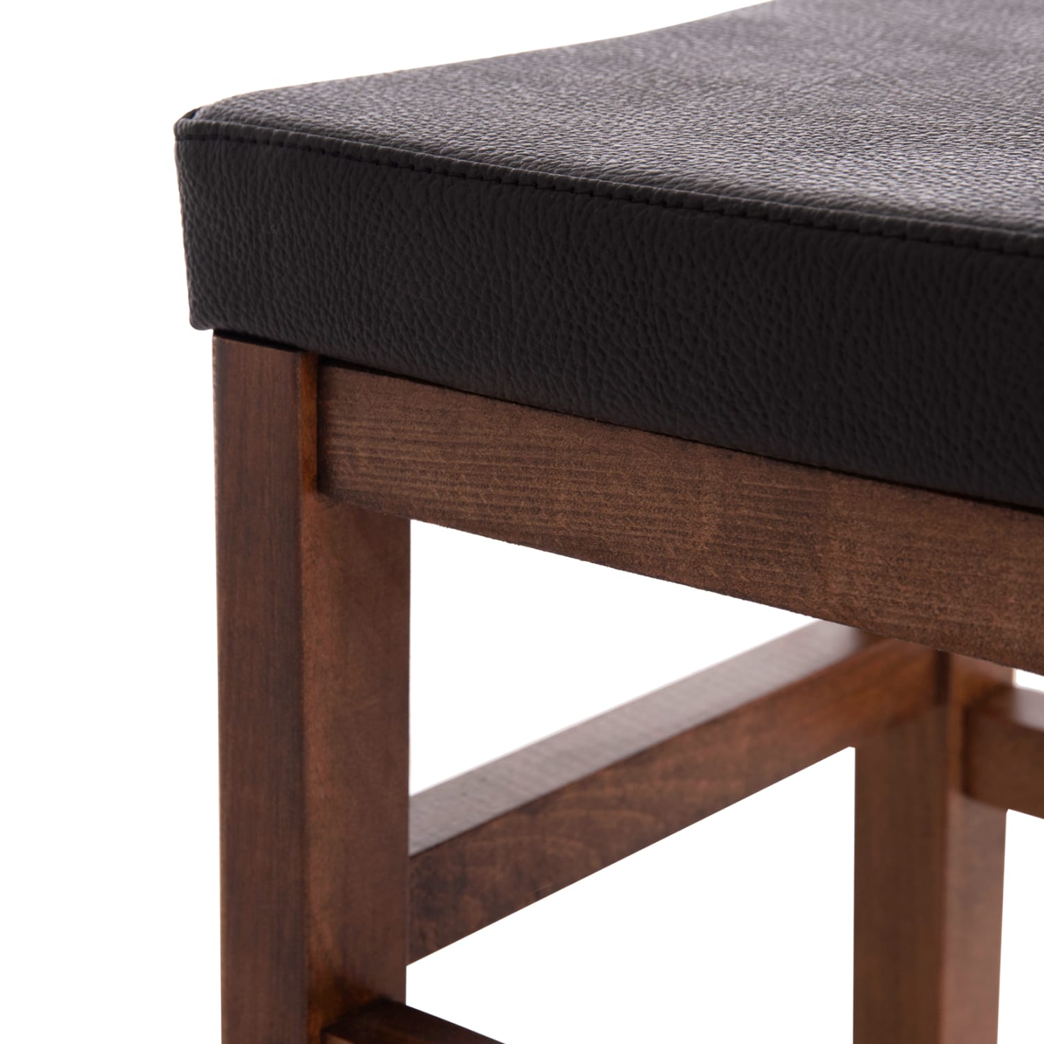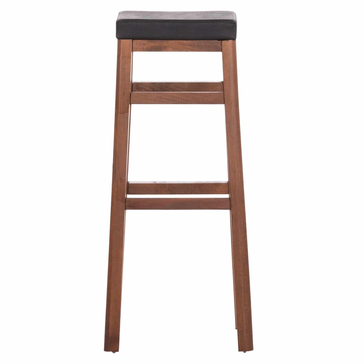 Σκαμπώ καφενείου από ξύλο οξιάς σε χρώμα καρυδί και κάθισμα απο τεχνόδερμα σε μαύρη απόχρωση.