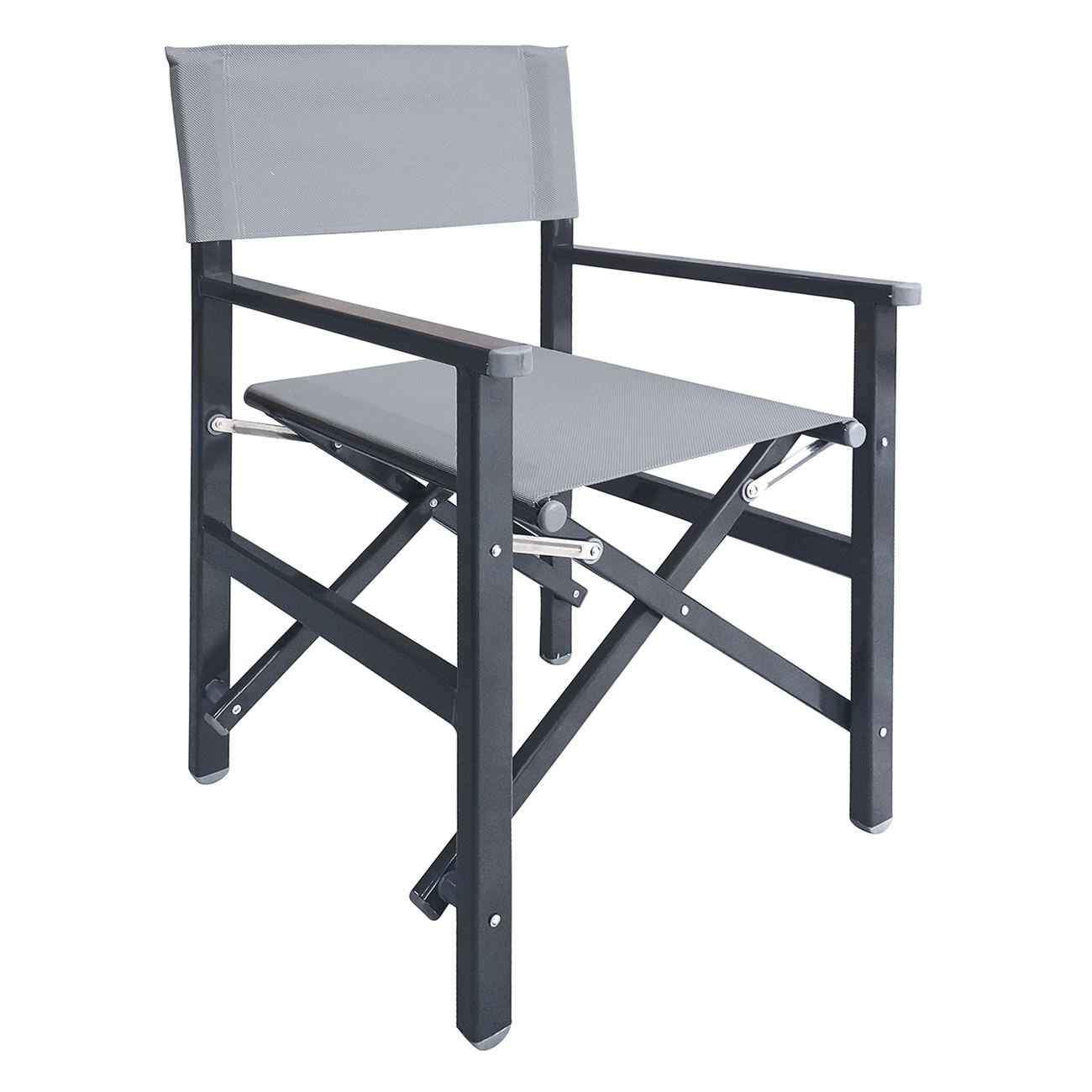 Σκηνοθέτη Πολυθρόνα, Αλουμίνιο Ανθρακί (1,2mm), Textilene Γκρι, Πτυσσόμενη(2,75kg) 54x50x88cm