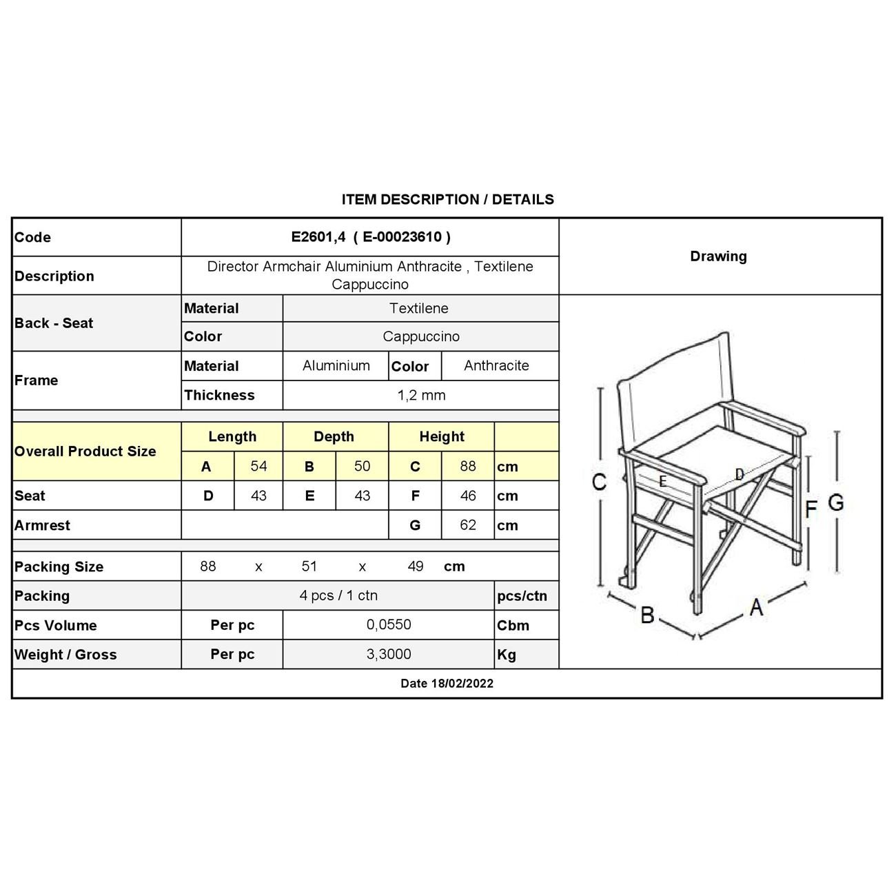 Ε2601,4 Σκηνοθέτη Πολυθρόνα Αλουμίνιο Ανθρακί 1,2mm/Textilene Μπεζ (2,75kg)
