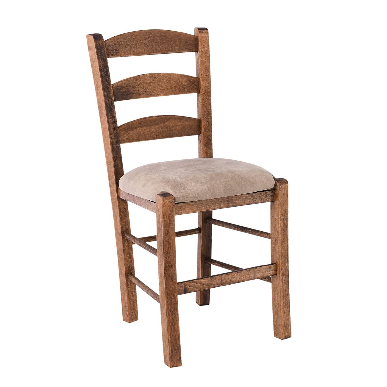 ΣΚΥΡΟΣ Καρέκλα Οξιά Βαφή Εμποτισμού Καρυδί, Κάθισμα Suede Μπεζ (Ρ-00026812)