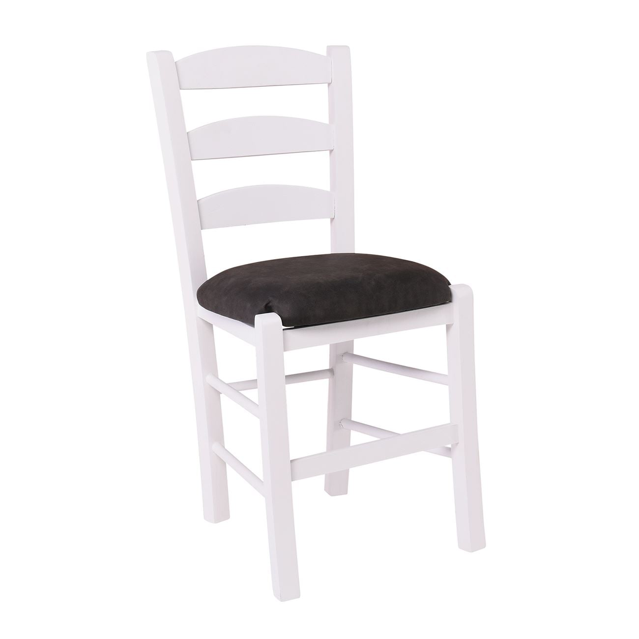 Ρ930,Ε8Τ2 ΣΚΥΡΟΣ Καρέκλα Οξιά Εμποτ.Λάκα Άσπρο/Suede Ανθρακί