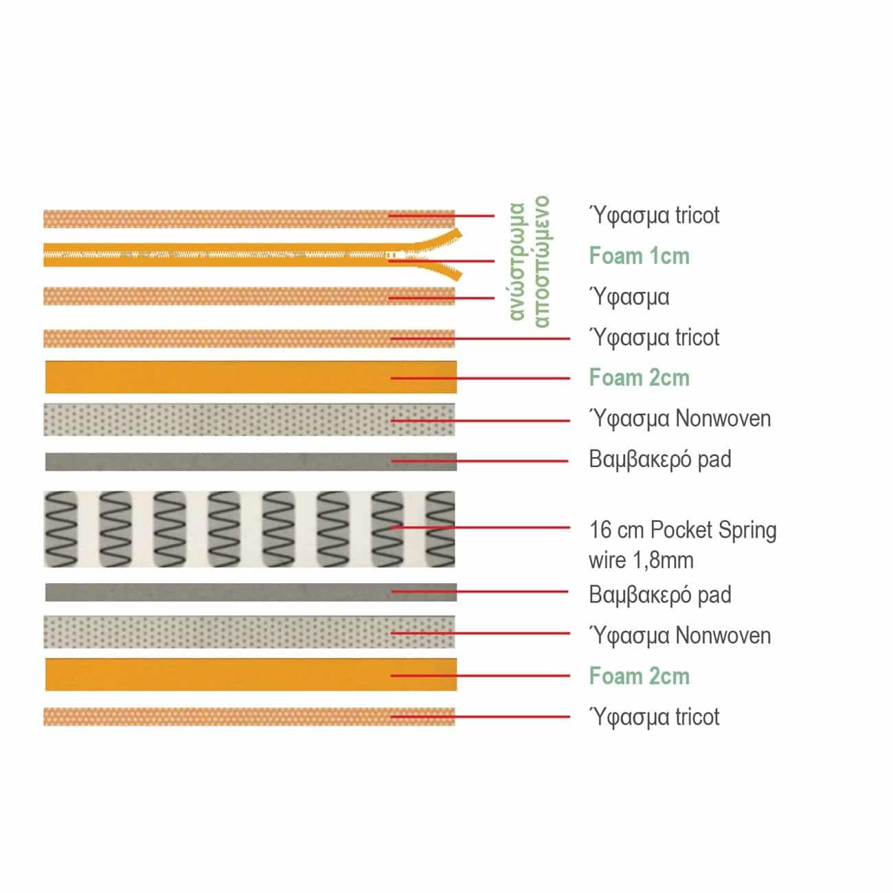 Έχει ελατήρια από ατσάλι, το καθένα μέσα σε υφασμάτινη θήκη,