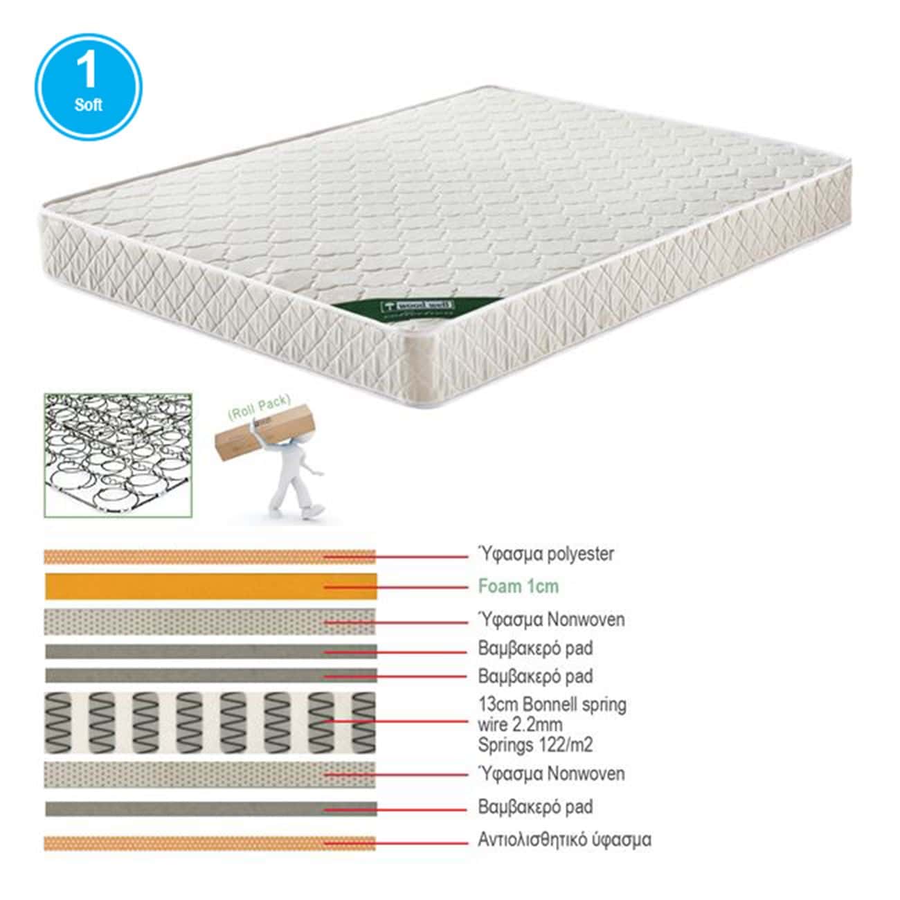 ΣΤΡΩΜΑ Bonnell Bonnell Spring Διπλής Όψης Roll Pack (1) (Ε-00023242)