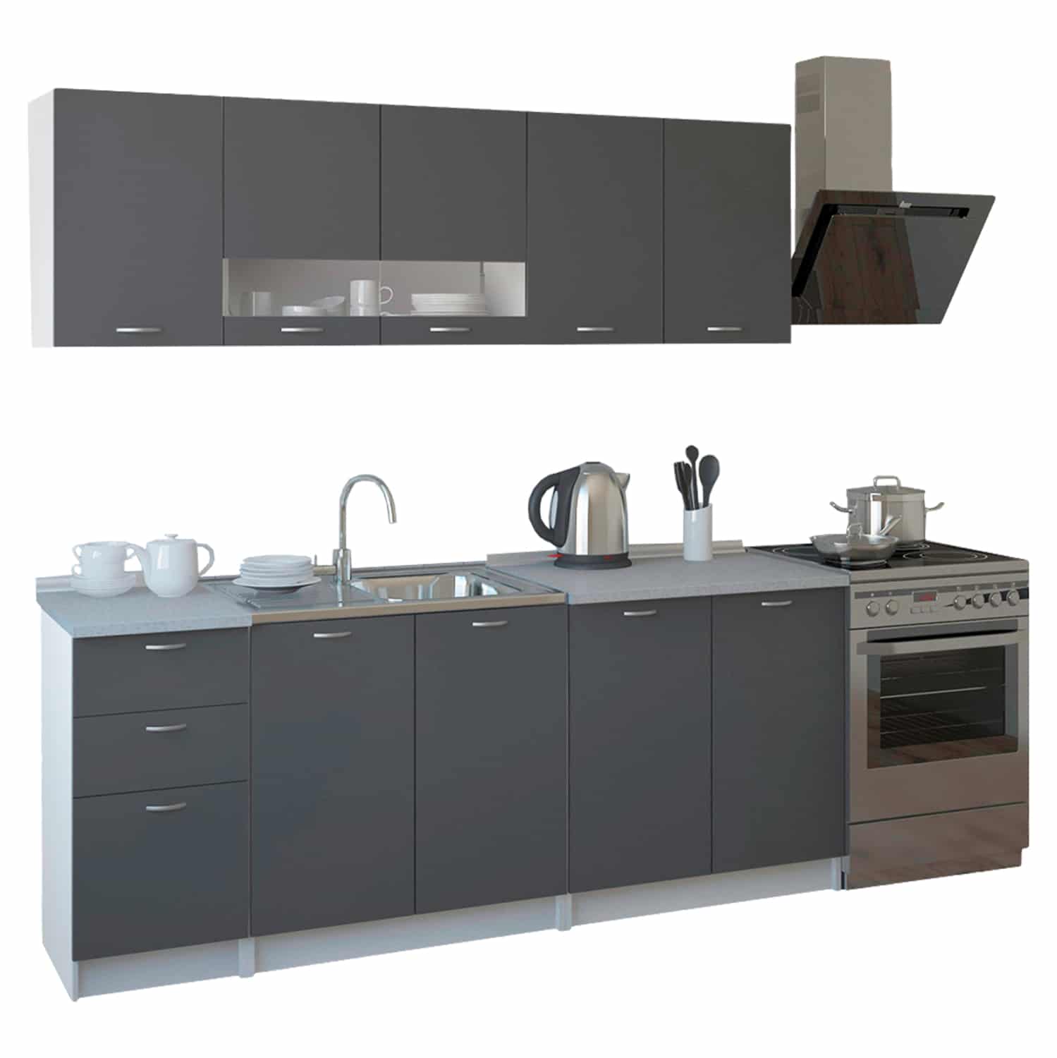 Σύνθεση Κουζίνας, σε απόχρωση γκρι – λευκό 200×46-29,2 εκ.