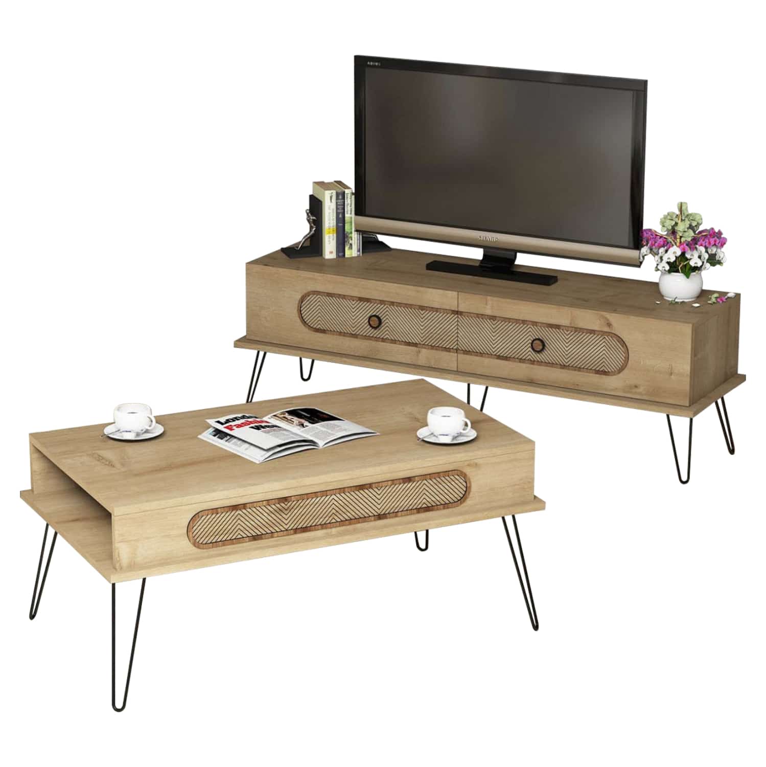 Η σύνθεση ΗΜ11851.02 θα αλλάξει την όψη στο σαλόνι σας και θα σας προσφέρει την αναβάθμιση που θέλετε. Είναι λιτή και αποτελείται από έναν συνδυασμό επίπλων για την τηλεόρασή σας με μονάδα δαπέδου, και ένα τραπεζάκι σαλονιού. Όλη η σύνθεση είναι της ίδιας σειράς με συνδυασμό χρωμάτων φυσικό ΟΑΚ.