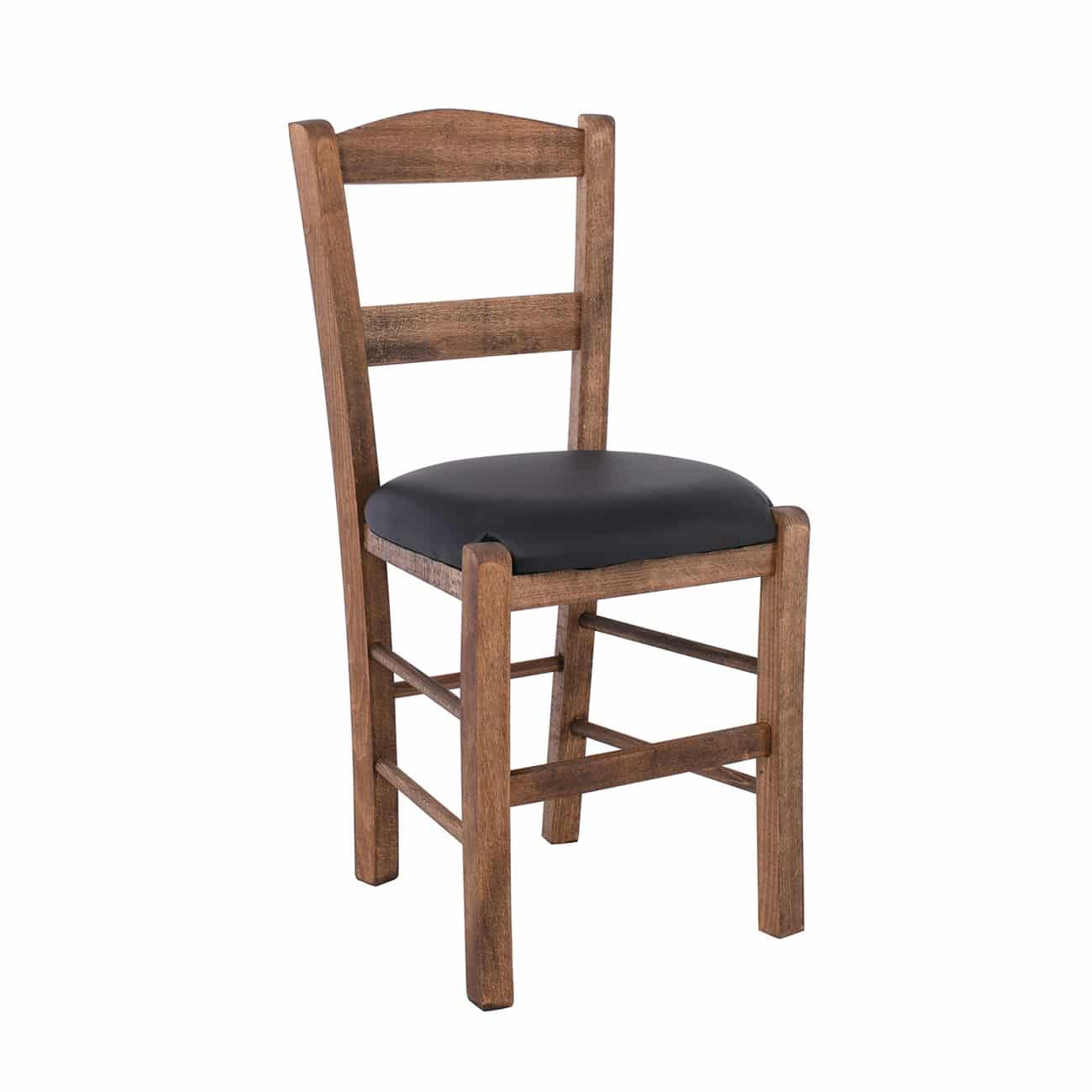 ΣΥΡΟΣ Καρέκλα Οξιά Βαφή Εμποτισμού Καρυδί, Κάθισμα Pu Μαύρο (Ρ-00025264)