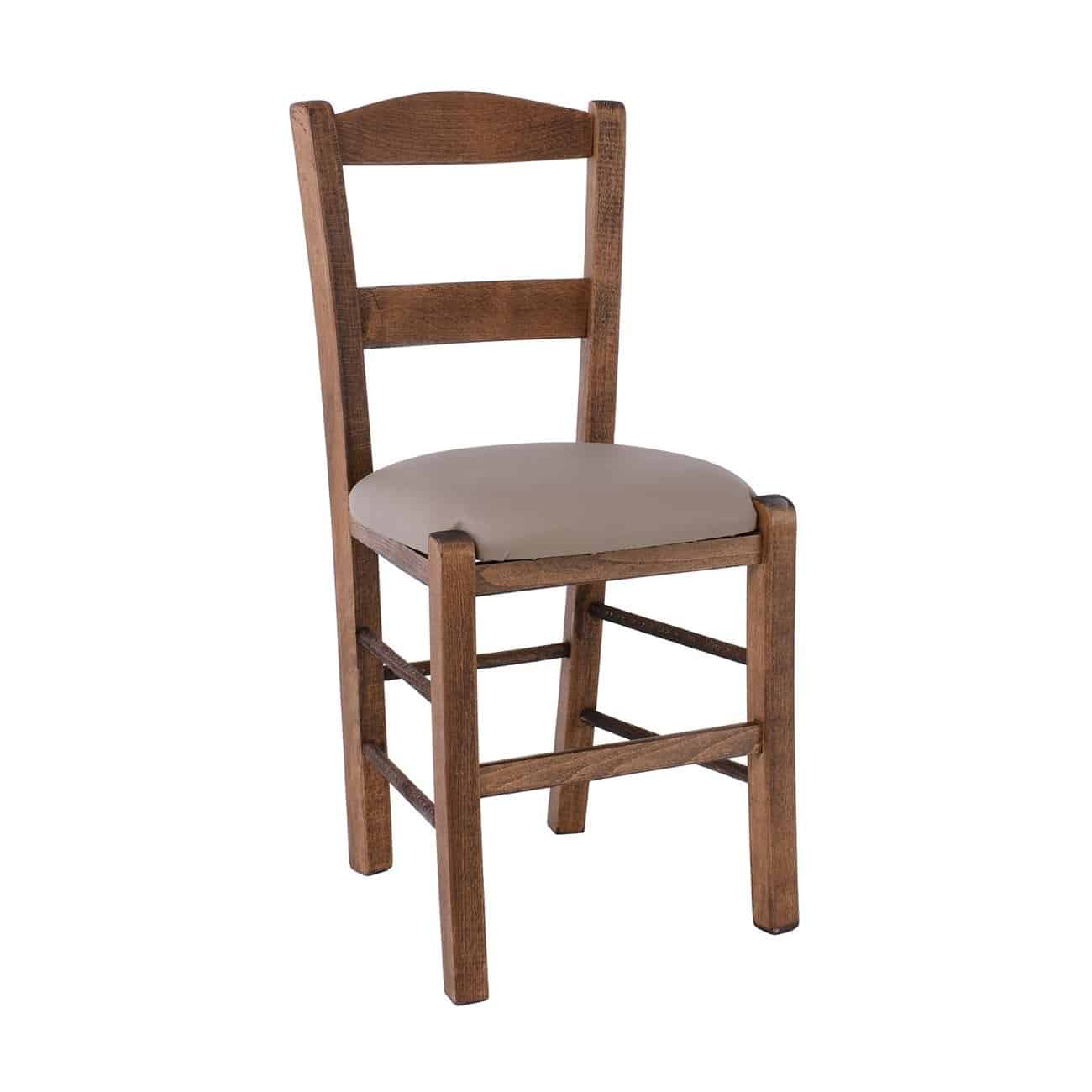 ΣΥΡΟΣ Καρέκλα Οξιά Βαφή Εμποτισμού Καρυδί, Κάθισμα Pu Cappuccino (Ρ-00026093)