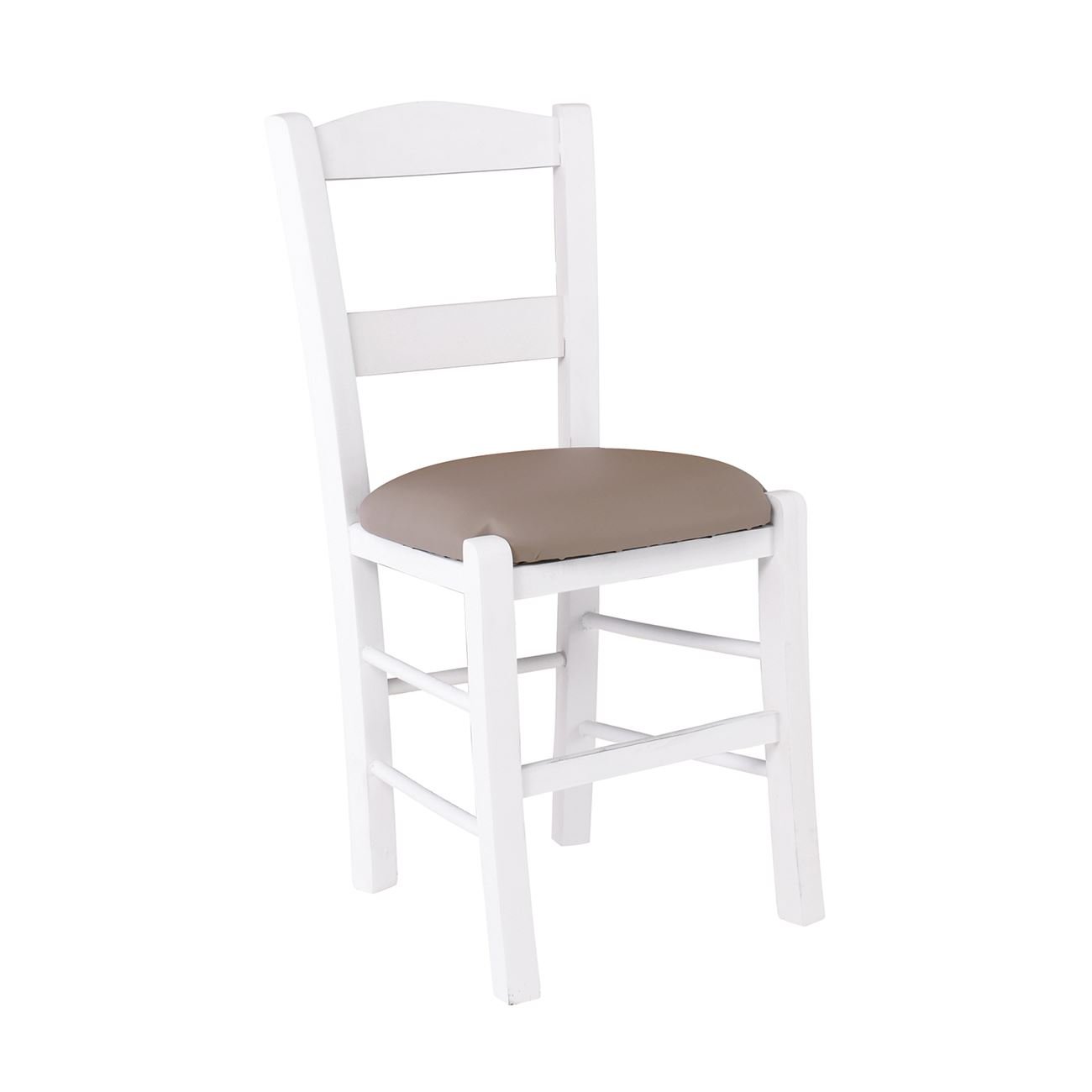 ΣΥΡΟΣ Καρέκλα Οξιά Βαφή Εμποτισμού Λάκα Άσπρο, Κάθισμα Pu Cappuccino 41x45x88cm