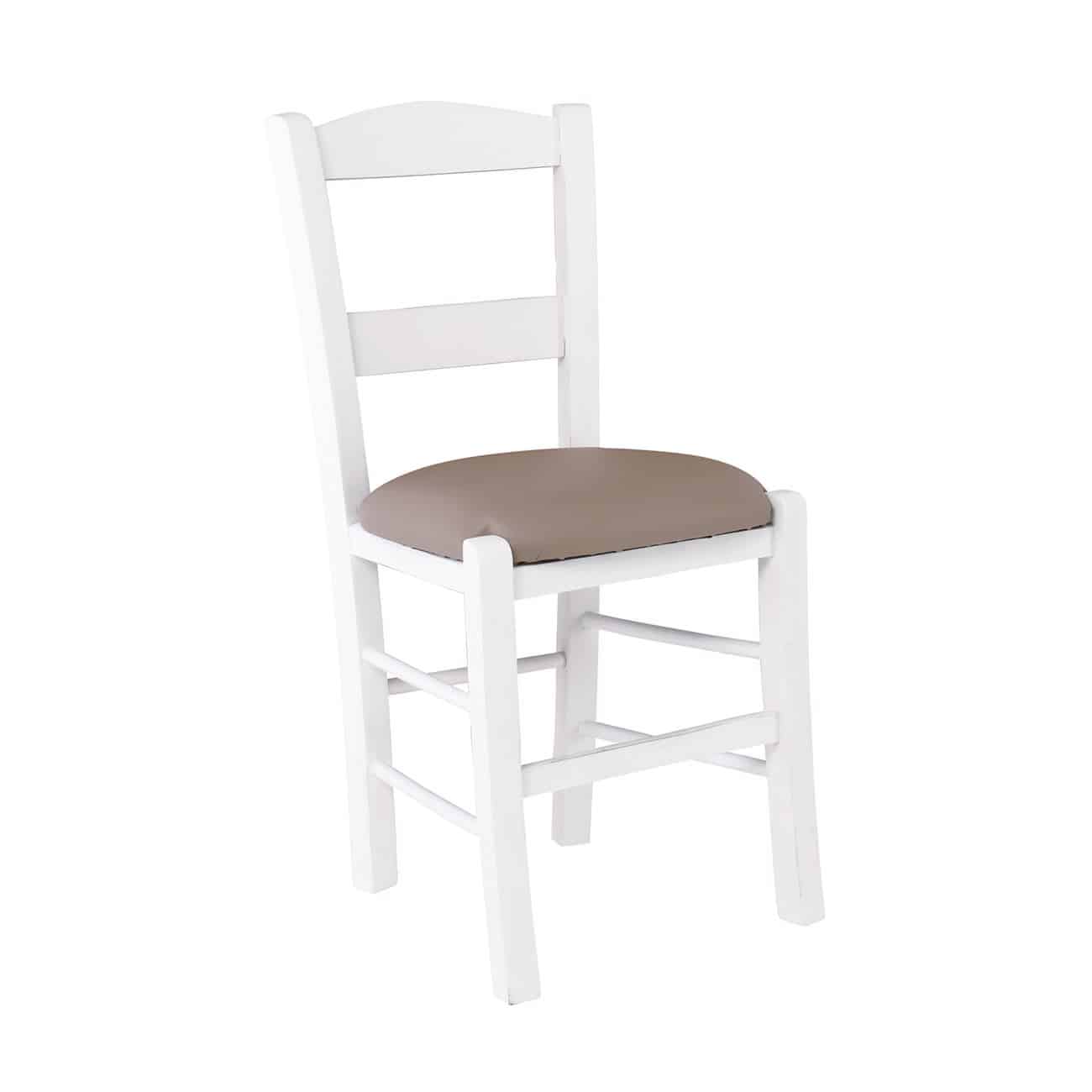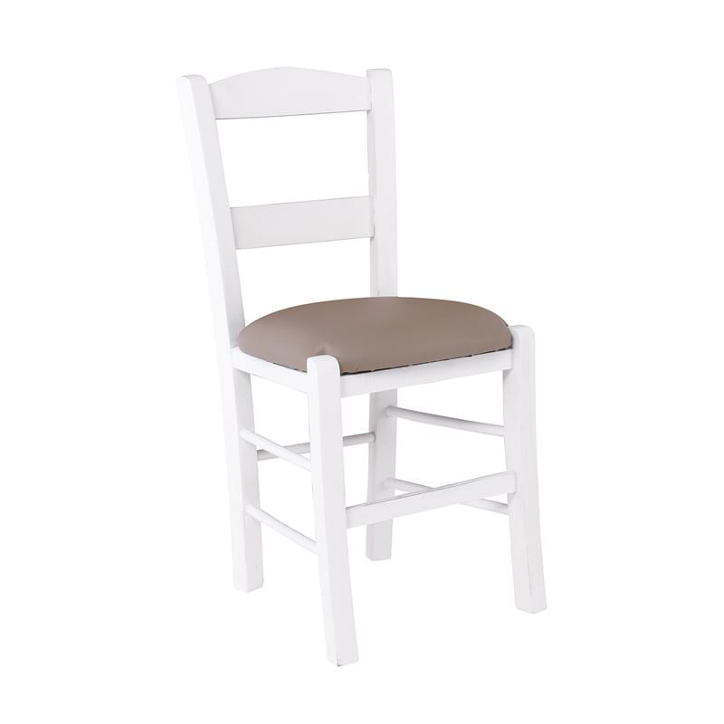 ΣΥΡΟΣ Καρέκλα Οξιά Βαφή Εμποτισμού Λάκα Άσπρο, Κάθισμα Pu Cappuccino (Ρ-00026095)