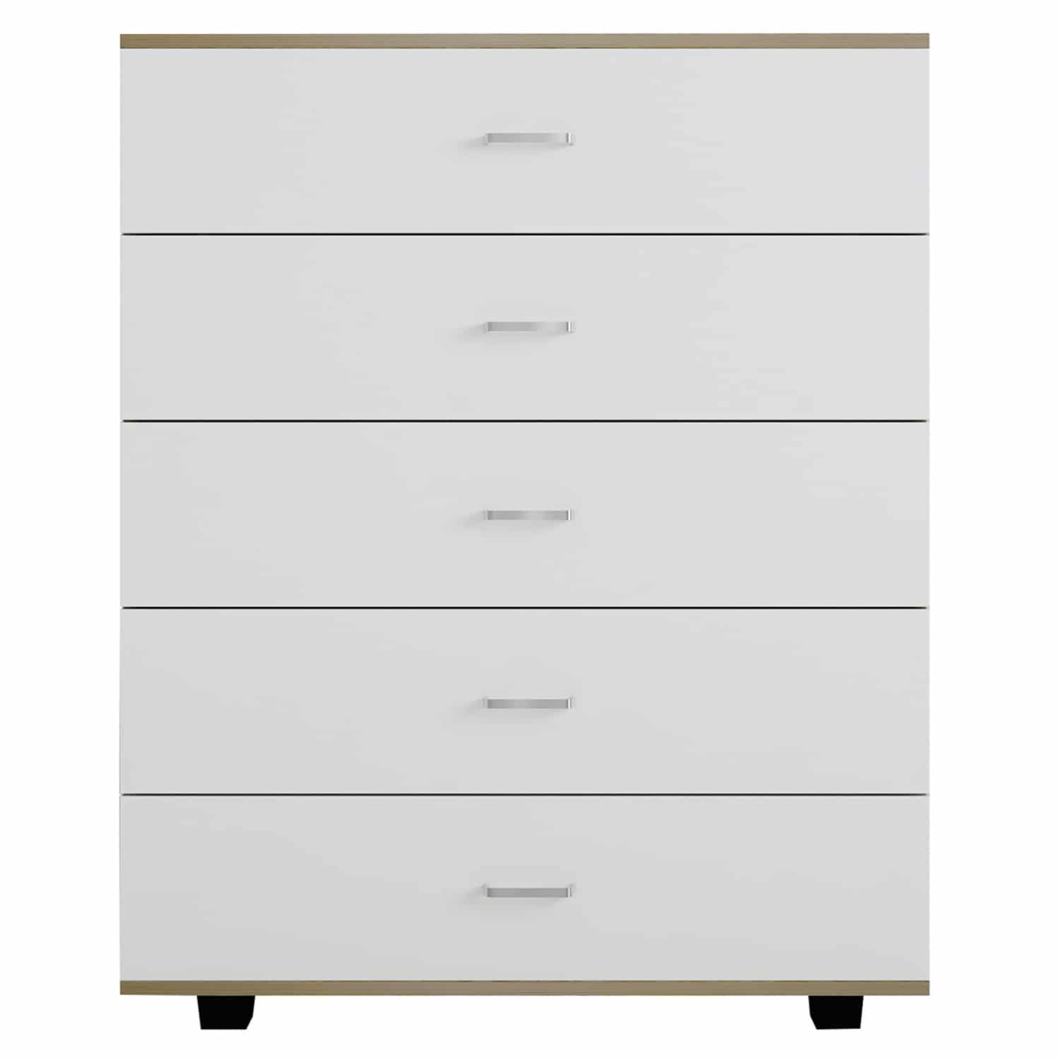 Η THORG είναι μια μεγάλη συρταριέρα με 5 φαρδιά συρτάρια που θα ικανοποιήσει όλες τις ανάγκες σας. Έχει χρώμα SONAMA με ΛΕΥΚΑ συρτάρια και χερούλια σε ασημί απόχρωση. Τα μαύρα ποδαράκια της συρταριέρας, είναι σταθερά και φαρδιά προσφέροντας στιβαρότητα στην κατασκευή και ταυτόχρονα δημιουργούν μια ευχάριστη διχρωμία με το κυρίως σώμα της συρταριέρας.
