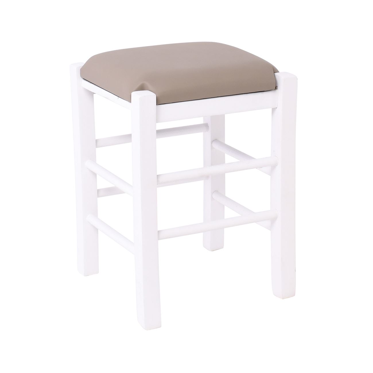 ΤΑΒΕΡΝΑΣ Σκαμπό Βοηθητικό, Οξιά Βαφή Εμποτισμός Λάκα Άσπρο, Κάθισμα Pu Cappuccino (Ρ-00026859)
