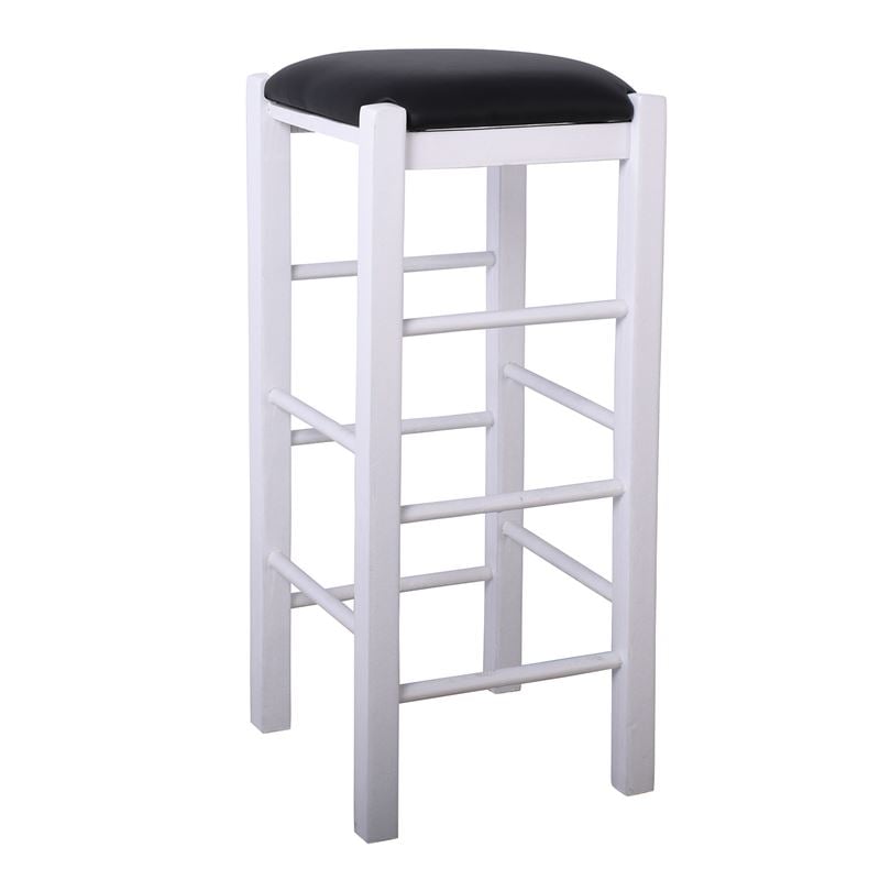 ΤΑΒΕΡΝΑΣ Σκαμπό BAR, Οξιά Βαφή Εμποτισμός Λάκα Άσπρο, Κάθισμα Pu Μαύρο 35x35x81cm