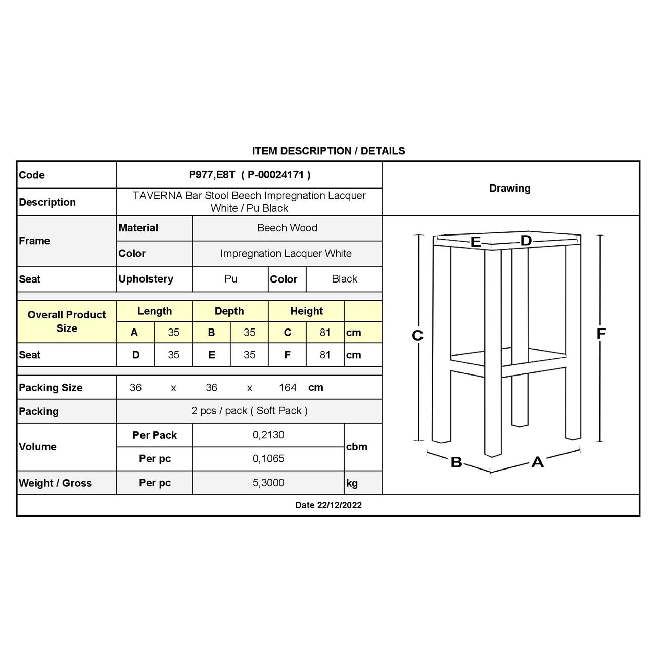 Ρ977,Ε8Τ ΤΑΒΕΡΝΑΣ Σκαμπό Bar Οξιά Εμποτ.Λάκα Άσπρο/Pu Μαύρο