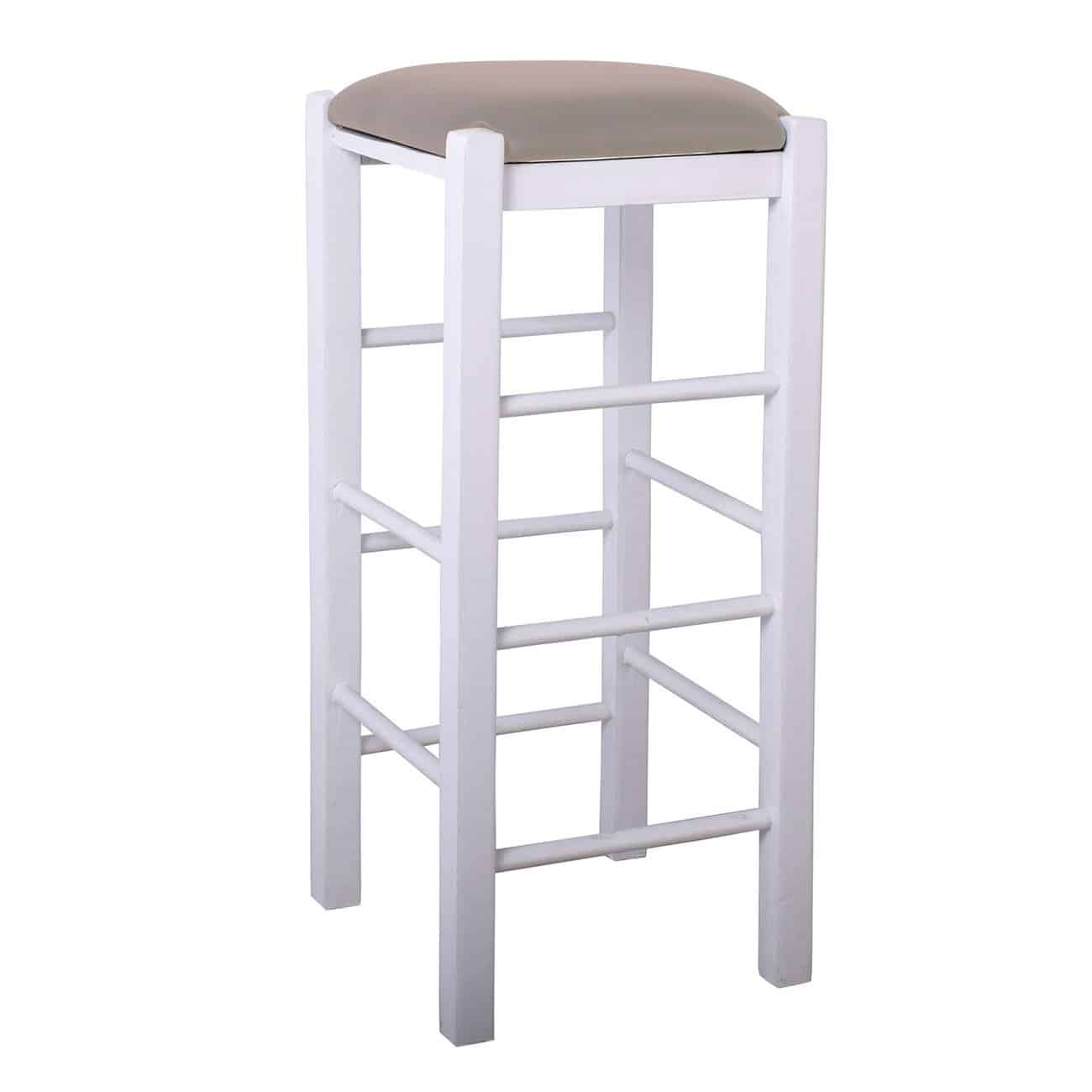 ΤΑΒΕΡΝΑΣ Σκαμπό BAR, Οξιά Βαφή Εμποτισμός Λάκα Άσπρο, Κάθισμα Pu Cappuccino 35x35x81cm