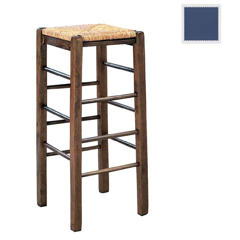 ΤΑΒΕΡΝΑΣ Σκαμπό BAR, Οξιά Εμποτισμός Ανιλίνη Μπλε, Κάθισμα Ψάθα (Ρ-00007852)