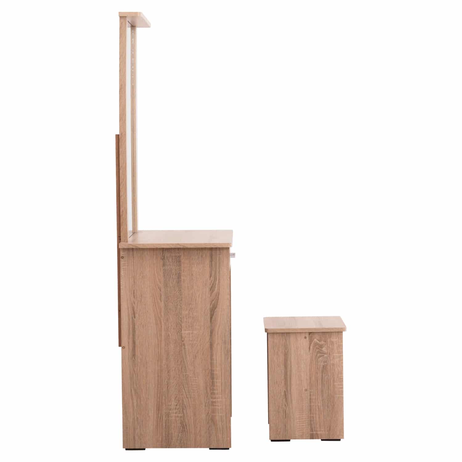 Το σετ τουαλέτας με καθρέπτη και σκαμπό CRYSTEL θα σας εντυπωσιάσει με τον λιτό κι απέριττο σχεδιασμό του. Το συρτάρι έχει ικανοποιητική χωρητικότητα ενώ συνολικά οι διαστάσεις αυτού του σετ το καθιστούν ιδιαίτερα βολικό για κάθε χώρο. Η κατασκευή του έχει γίνει από μελαμίνη σε χρώμα SONAMA OAK.