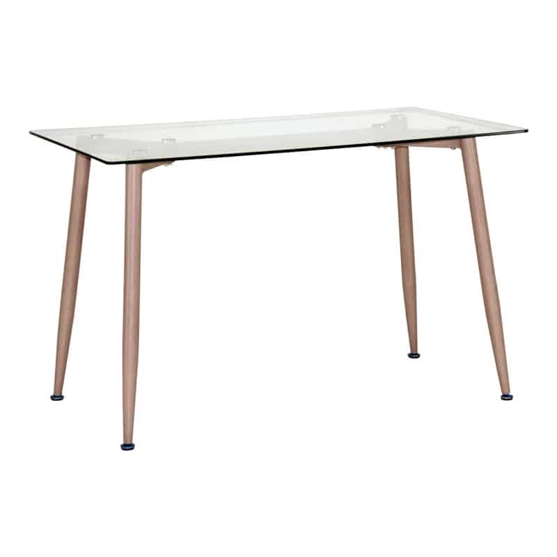 Το τραπέζι AM-C-290-1-2 είναι ένα τραπέζι φαγητού με επένδυση από σκληρυμένο γυαλί διαστάσεων 120/70 cm και μεταλλικά πόδια με επίστρωση ξύλου.