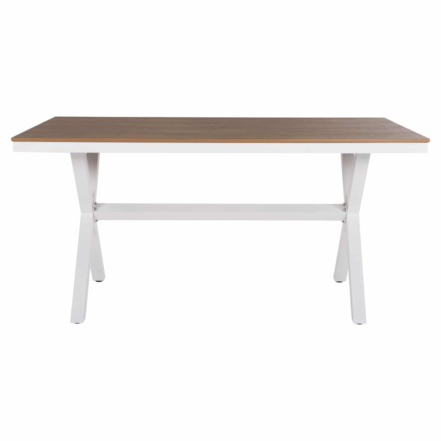 Το TAWNEE είναι ένα ορθογώνιο τραπέζι για εξωτερικούς χώρους με σκελετό αλουμινίου σε χιαστί διάταξη ποδιών που συνδέονται με μια μπάρα αλουμινίου και έχει ΛΕΥΚΟ χρώμα. Η επιφάνεια είναι από πλάκες polywood σε ΦΥΣΙΚΟ χρώμα ξύλου. Πρόκειται για ένα όμορφο τραπέζι σε μεγάλη διάσταση, που μπορεί να εξυπηρετήσει 6 τουλάχιστον άτομα.