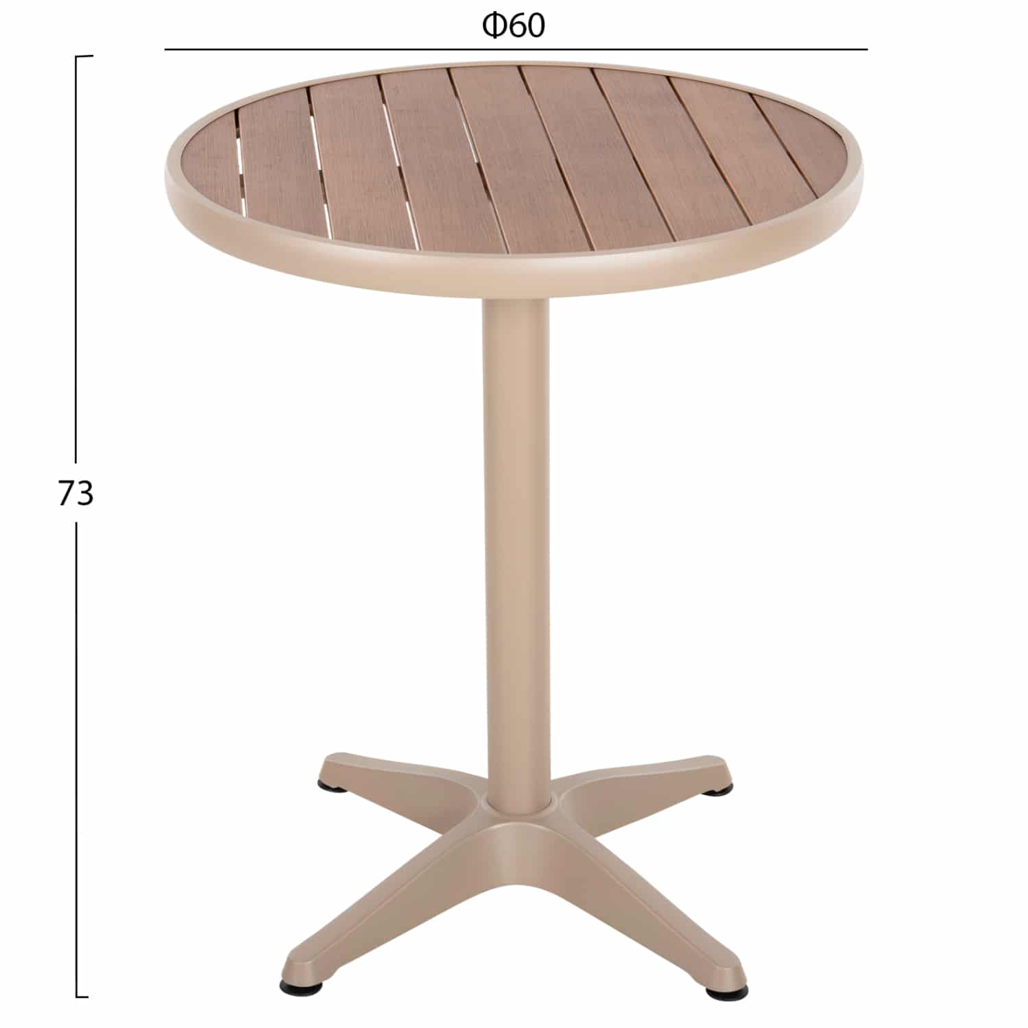 ΤΡΑΠΕΖΙ ΑΛΟΥΜΙΝΙΟΥ ΣΤΡΟΓΓΥΛΟ ALEXA HM6086.04 ΣΑΜΠΑΝΙ-POLYWOOD TOP ΦΥΣΙΚΟ Φ60×73Υεκ. HM6086.04