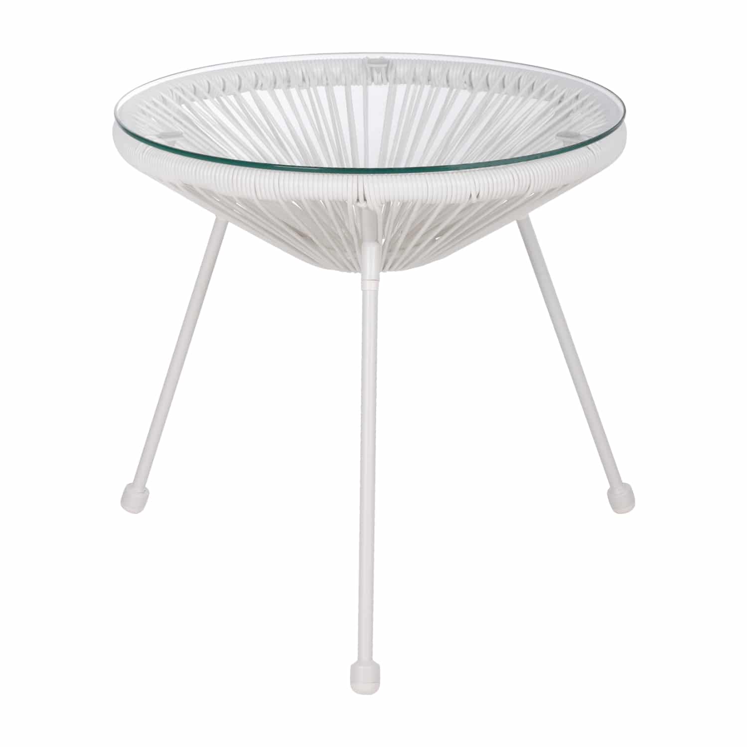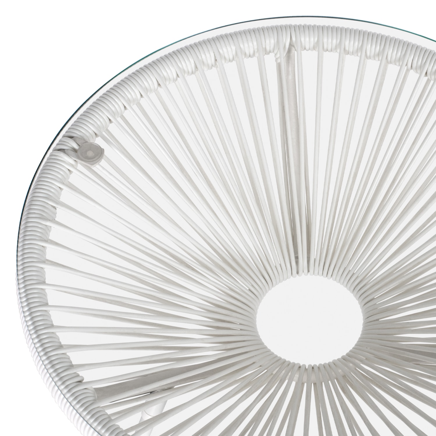 Το ALLEGRA είναι ένα χαμηλό στρογγυλό βοηθητικό τραπέζι, κυρίως για επαγγελματική χρήση. Στηρίζεται σε μια βάση με 3 λευκά μεταλλικά πόδια. Το τραπέζι είναι κωνικό από συνθετικό Rattan σε λευκό χρώμα, και η επιφάνειά του είναι γυαλί ασφαλείας. Ένα πανέμορφο τραπέζι, το οποίο αν συνδυαστεί και με καρέκλες της ίδιας σειράς θα αποτελέσει ένα καταπληκτικό μέρος στον χώρο σας.