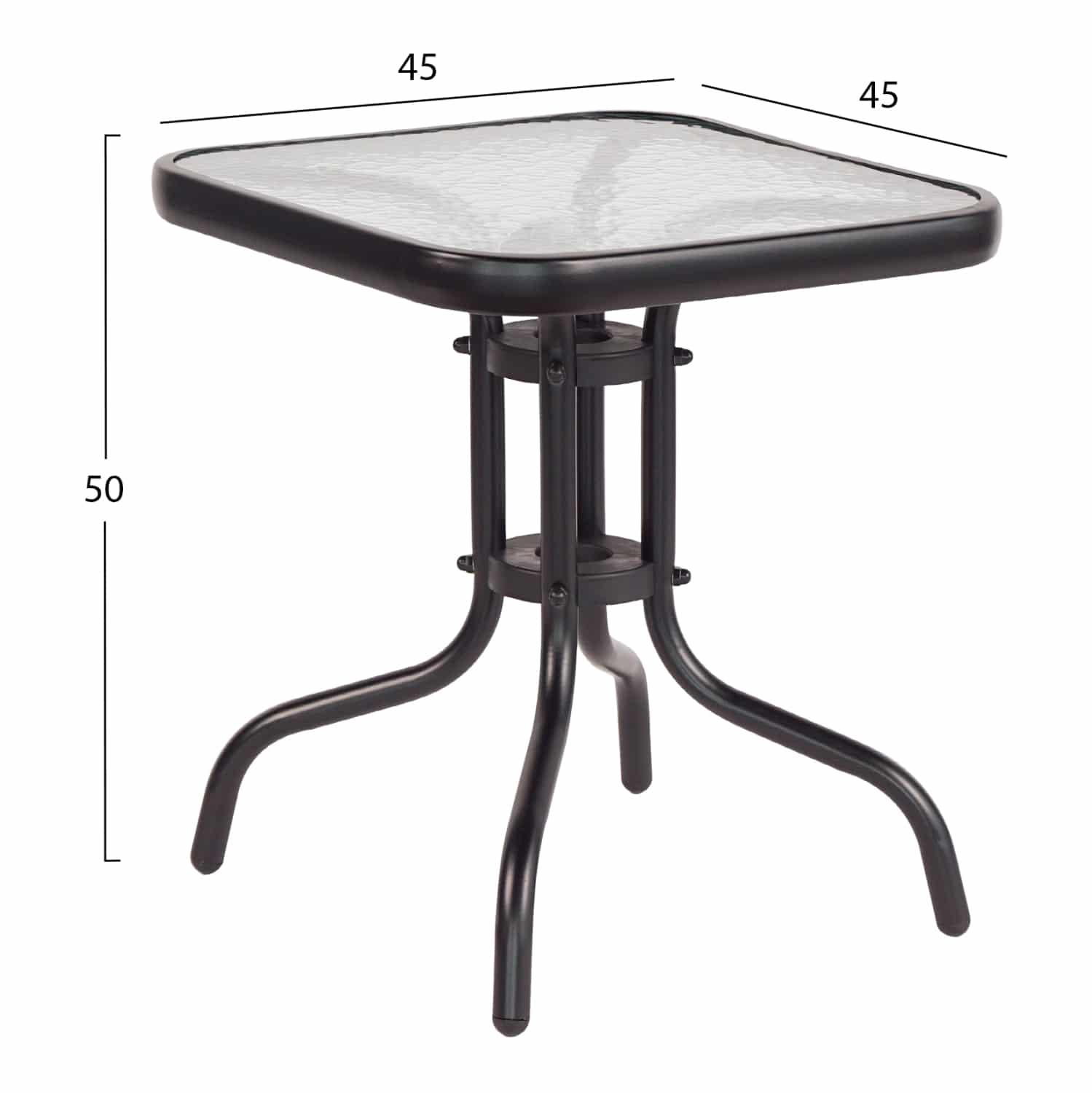ΤΡΑΠΕΖΙ ΒΟΗΘΗΤΙΚΟ FIGO HM6067.03 ΜΕΤΑΛΛΙΚΟ ΜΑΥΡΟ-ΓΥΑΛΙΝΗ ΕΠΙΦΑΝΕΙΑ 45x45x51Yεκ HM6067.03