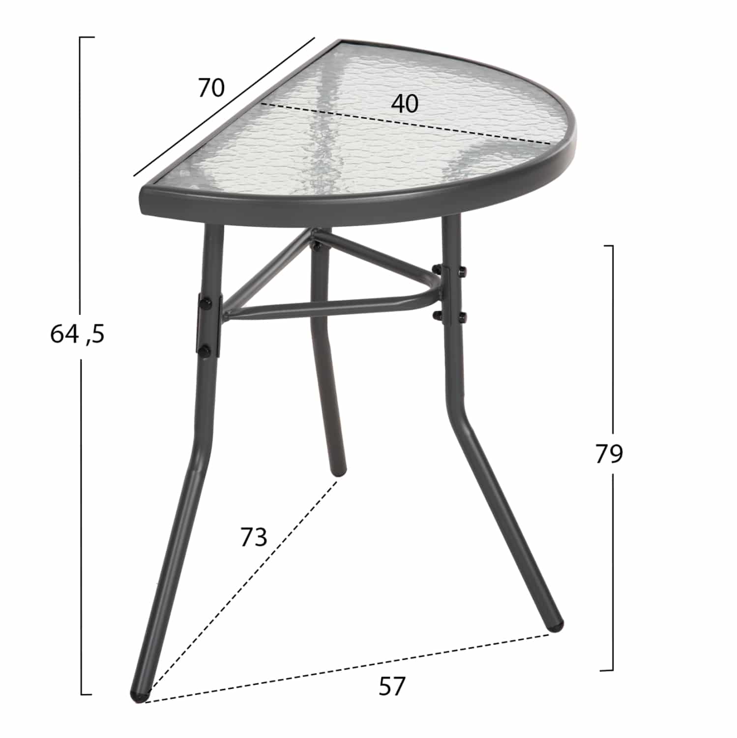 ΤΡΑΠΕΖΙ ΗΜΙΚΥΚΛΙΚΟ LIMA HM5967.01 ΜΕΤΑΛΛΙΚΟ ΓΚΡΙ ΜΕ ΓΥΑΛΙΝΟ TOP 70x40x64,5Υεκ.