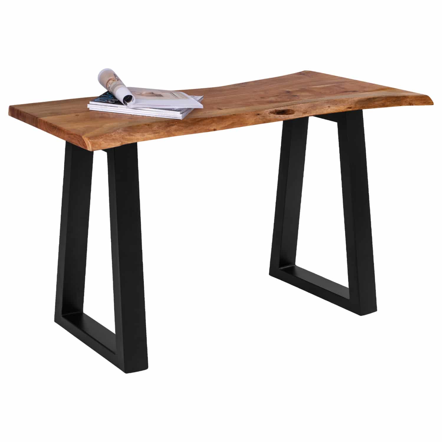 Τραπέζι κονσόλα κατασκευασμένο από μασίφ ξύλο ακακίας σε φυσική απόχρωση και μεταλλικά πόδια σε μαύρη απόχρωση.