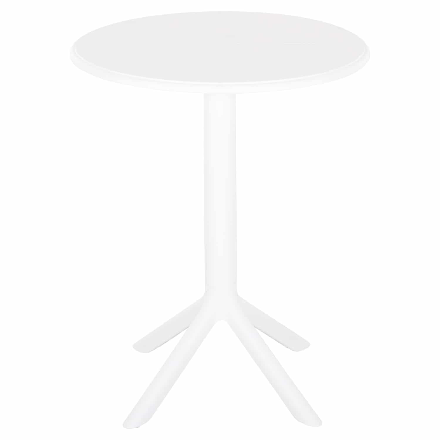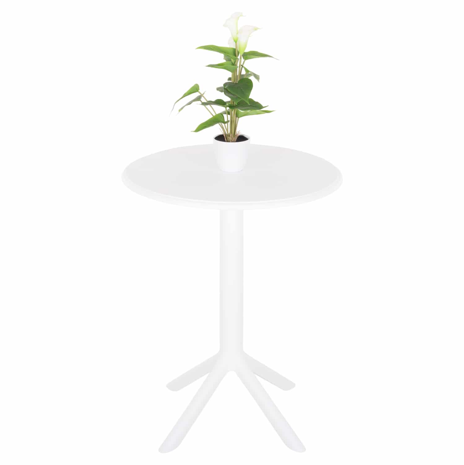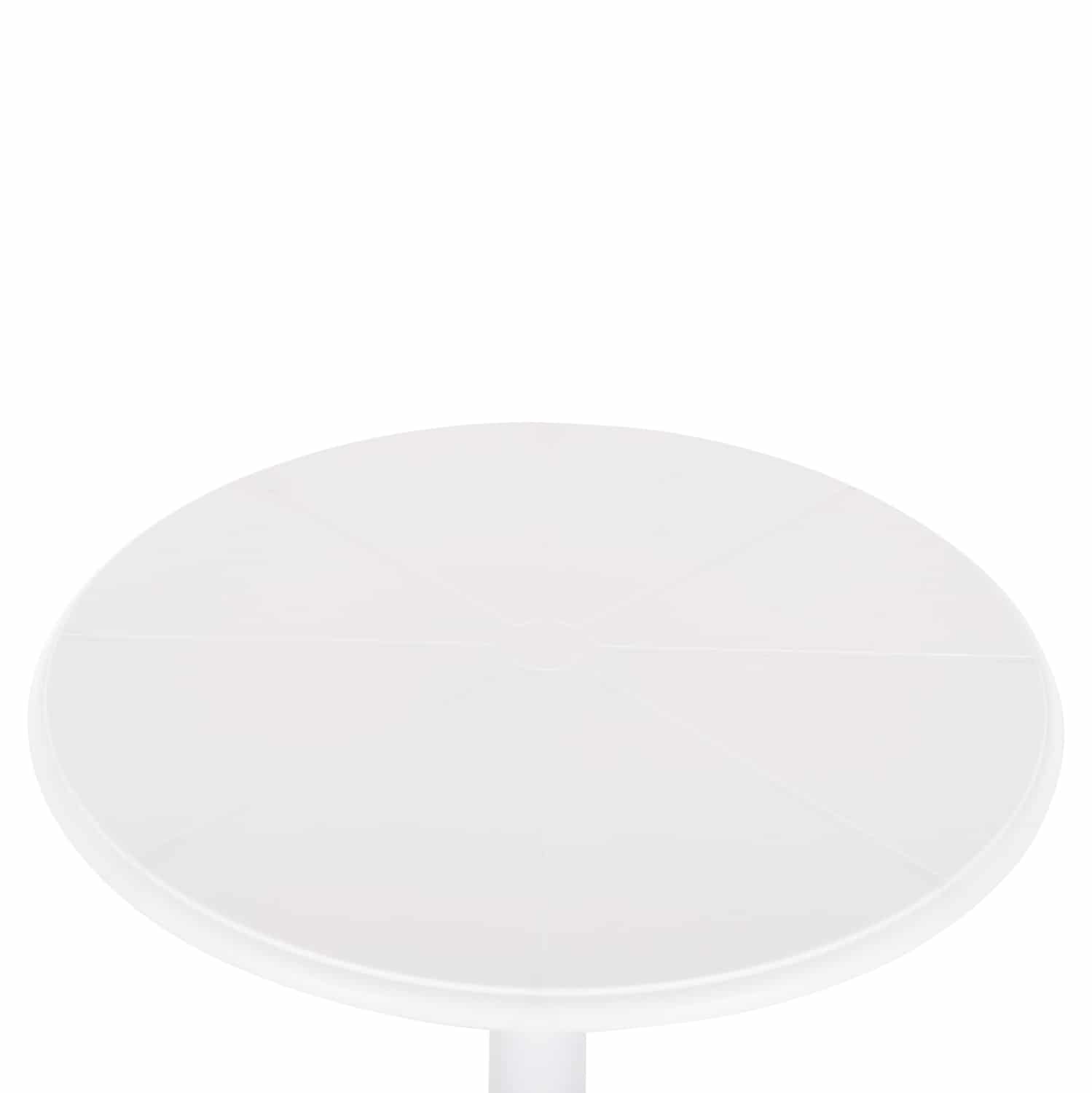 Το τραπέζι πολυπροπυλενίου TERRIN σε ΛΕΥΚΟ χρώμα είναι η ιδανική πρόταση για χρήση σε εξωτερικούς χώρους, είτε επαγγελματικούς (χώροι δεξιώσεων, εταιρείες catering, κλπ.) είτε για το σπίτι. Το τραπέζι είναι στρογγυλό, ενώ η στήριξη γίνεται με μια κολώνα στο κέντρο που καταλήγει σε 4 πόδια («νύχια»).