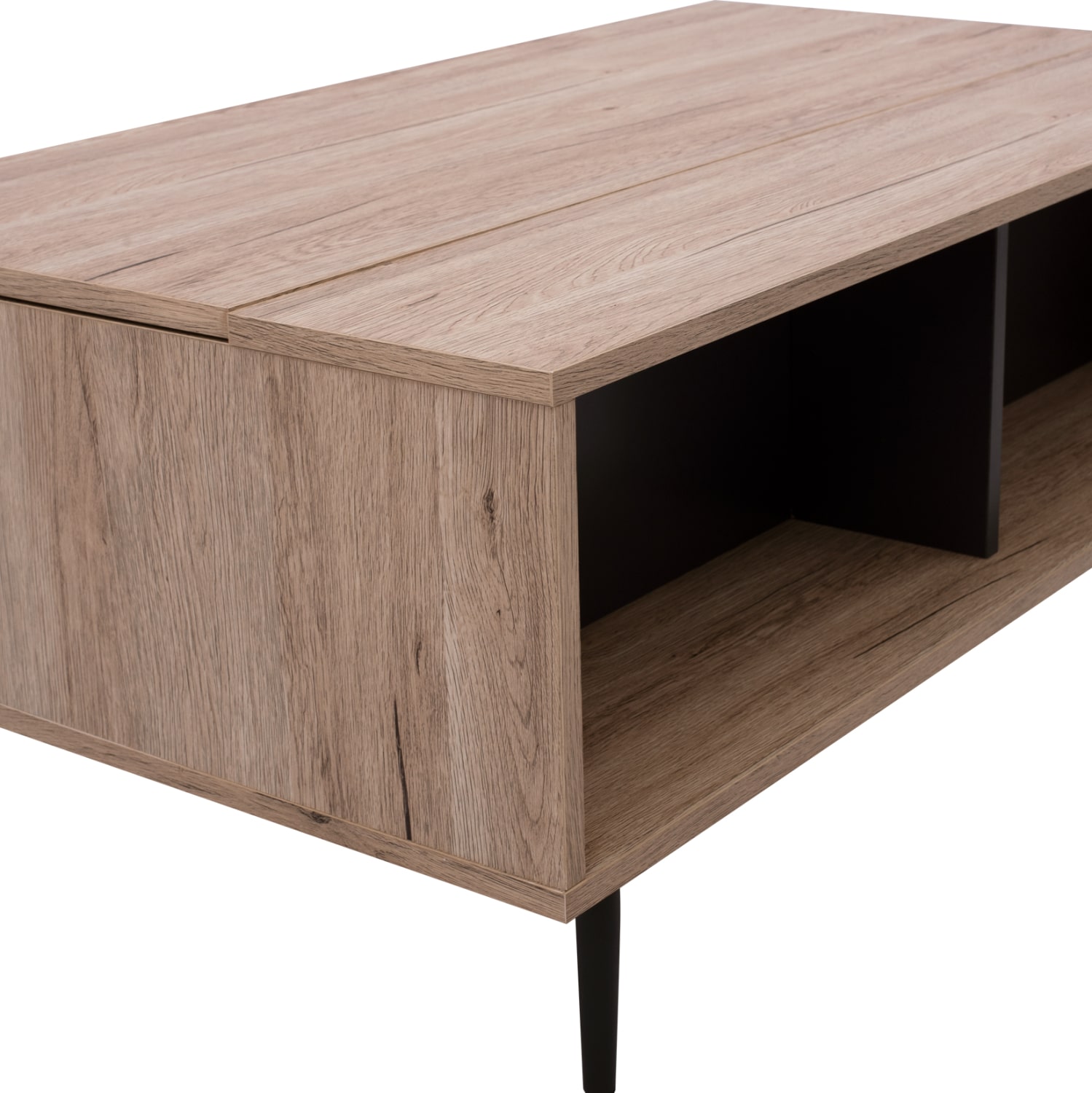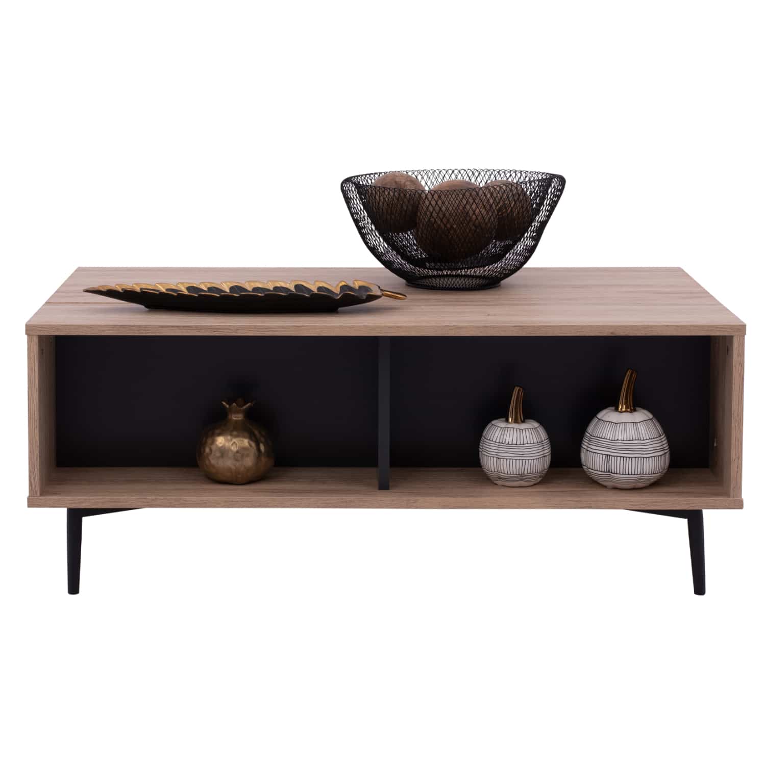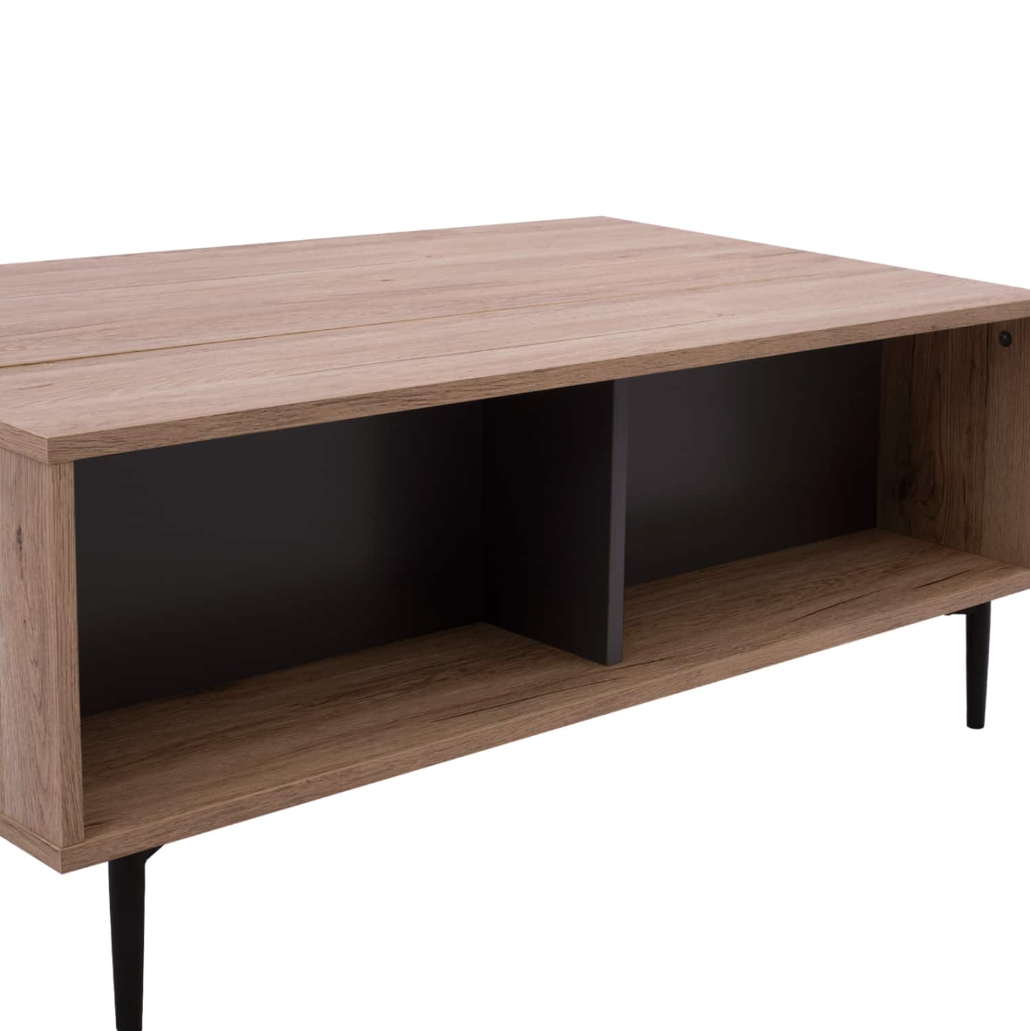 ΗΜ8677.11 τραπεζάκι σαλονιού—– Το τραπεζάκι MARGARIT είναι ένα πανέμορφο έπιπλο σε χρώμα OAK και λεπτομέρειες σε ΓΚΡΙ χρώμα. Το πρακτικό του design θα αλλάξει την εικόνα του σαλονιού ή του καθιστικού σας προς το καλύτερο. Πρόκειται για μια κατασκευή με μια ικανοποιητικού μεγέθους επάνω επιφάνεια και ένα ράφι χωρισμένο σε δύο μέρη από κάτω για επιπλέον χώρο για οτιδήποτε χρειαστεί. Τα πόδια είναι μεταλλικά σε μαύρο χρώμα, επιτείνοντας όμορφη διχρωμία. Αυτό όμως που κάνει αυτό το τραπεζάκι να ξεχωρίζει, είναι ότι το πίσω μισό διαθέτει αποθηκευτικό χώρο αφού η μισή επιφάνεια «σηκώνεται» με μεταλλικό μηχανισμό αποκαλύπτοντας έναν χώρο πίσω από το εμπρός ράφι. Η κομψότητα, η ποιότητα και το minimal πρωτοποριακό design, είναι κάποια χαρακτηριστικά από το τραπέζι σαλονιού, που έχει φτιαχτεί για εσένα.