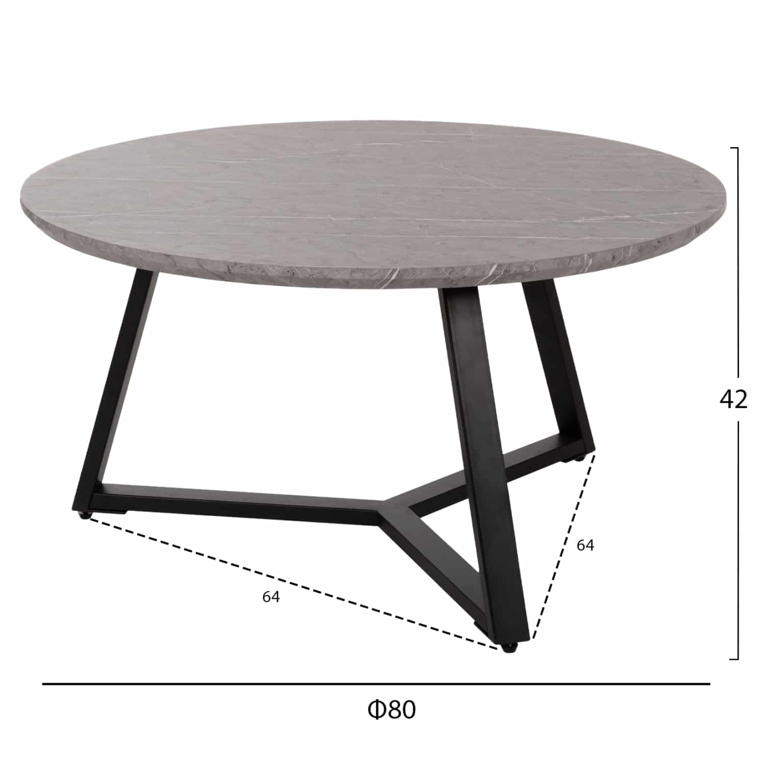 ΤΡΑΠΕΖΙ ΣΑΛΟΝΙΟΥ ΣΤΡΟΓΓΥΛΟ ROCKET HM9586.02 MDF ΓΚΡΙ ΜΑΡΜΑΡΟ-ΜΑΥΡΗ ΣΑΓΡΕ ΒΑΣΗ Φ80×42Υεκ.