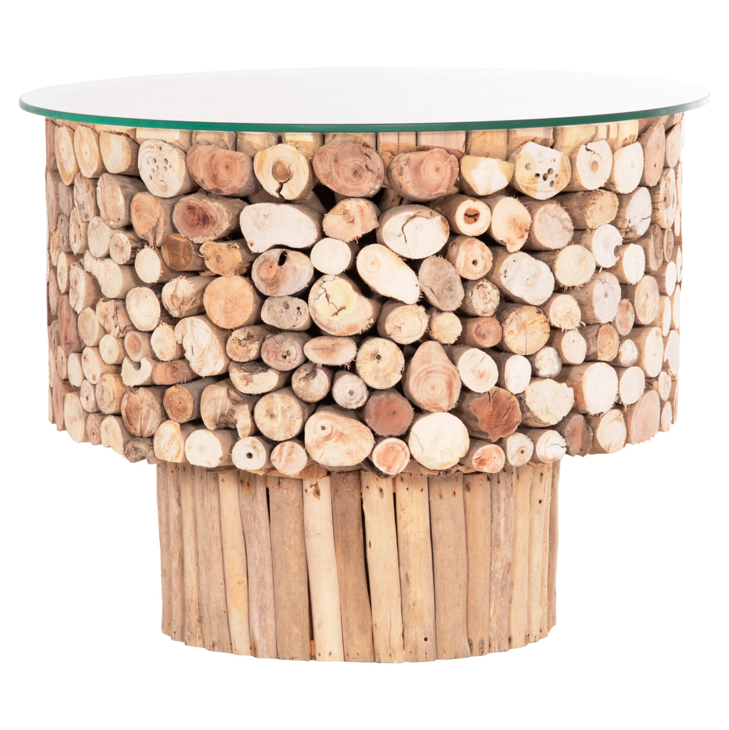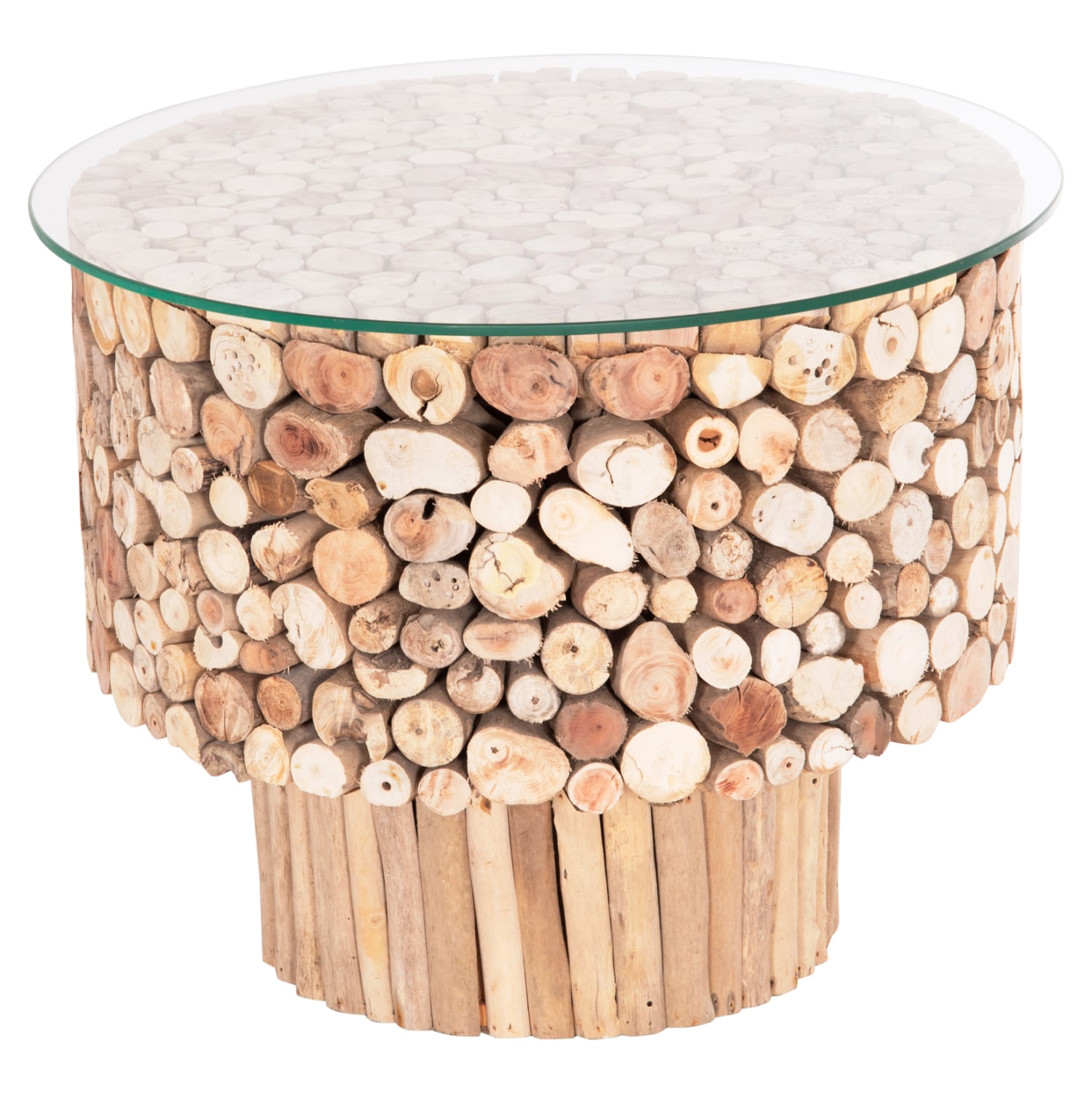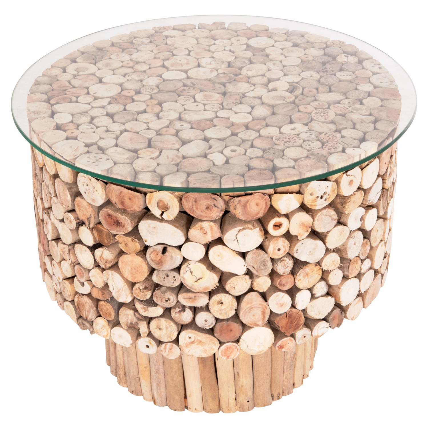 ΤΡΑΠΕΖΙ ΣΑΛΟΝΙΟΥ ΣΤΡΟΓΓΥΛΟ SPARROW HM9963 DRIFTWOOD–ΓΥΑΛΙ Φ65×51,5Υεκ. HM9963