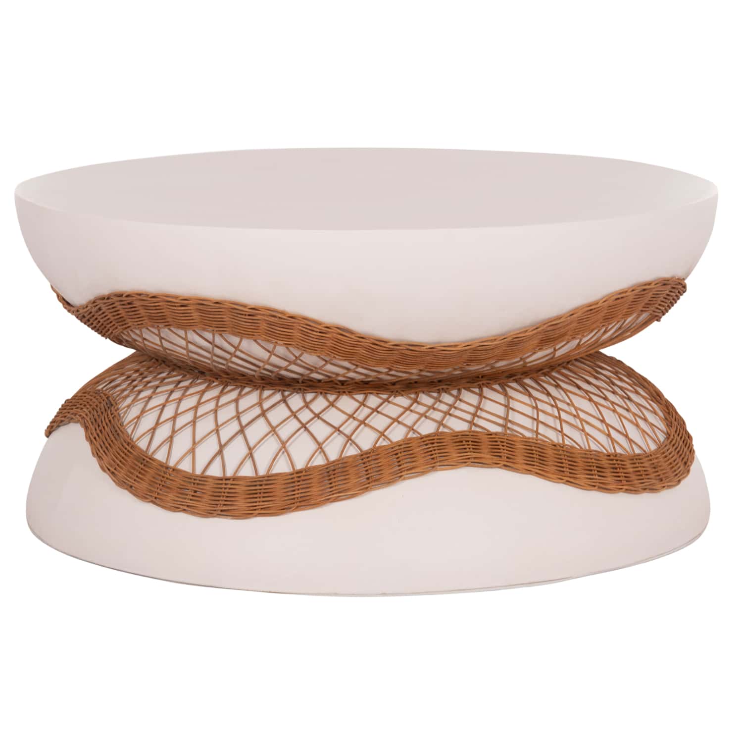 ΤΡΑΠΕΖΙ ΣΑΛΟΝΙΟΥ ANNA HM18157.02 FIBER CEMENT ΛΕΥΚΟ-ΦΥΣΙΚΟ RATTAN–Φ92×44.5Υεκ HM18157.02