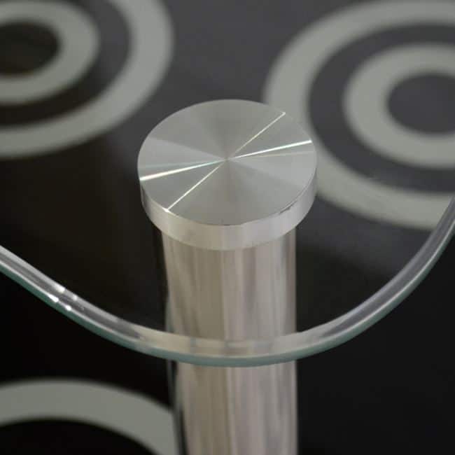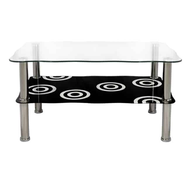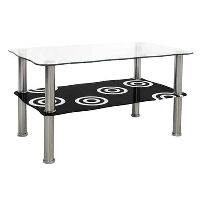 ΗΜ0087 ΤΡΑΠΕΖΙ ΣΑΛΟΝΙΟΥ—–Ανακαλύψτε το μοντέρνο τραπεζάκι σαλονιού GRABES. Διαθέτει 2 γυάλινες επιφάνειες και μεταλλικά χρωμιωμένα πόδια. Η επάνω επιφάνεια είναι διάφανη, ενώ η κάτω επιφάνεια είναι μαύρη με όμορφα κυκλικά σχέδια. Το γυαλί σε συνδυασμό με τα χρωμιωμένα πόδια προσδίδουν την αίσθηση της καθαρότητας και της απλότητας στον χώρο.