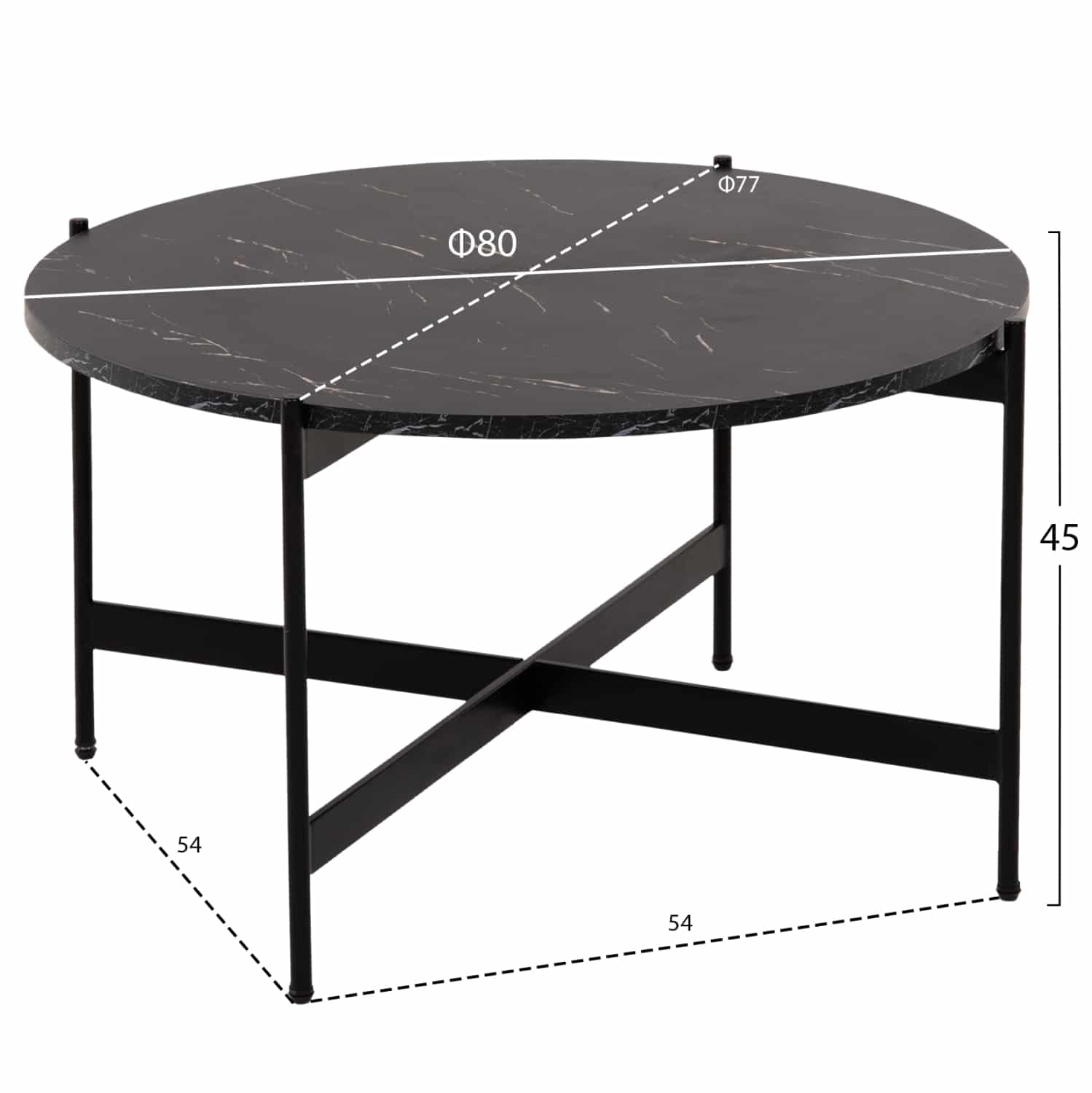 ΤΡΑΠΕΖΙ ΣΑΛΟΝΙΟΥ HM9588.01 MDF ΜΑΥΡΟ ΜΑΡΜΑΡΟ-ΜΑΥΡΗ ΜΕΤΑΛΛΙΚΗ ΒΑΣΗ Φ80×45Υεκ.