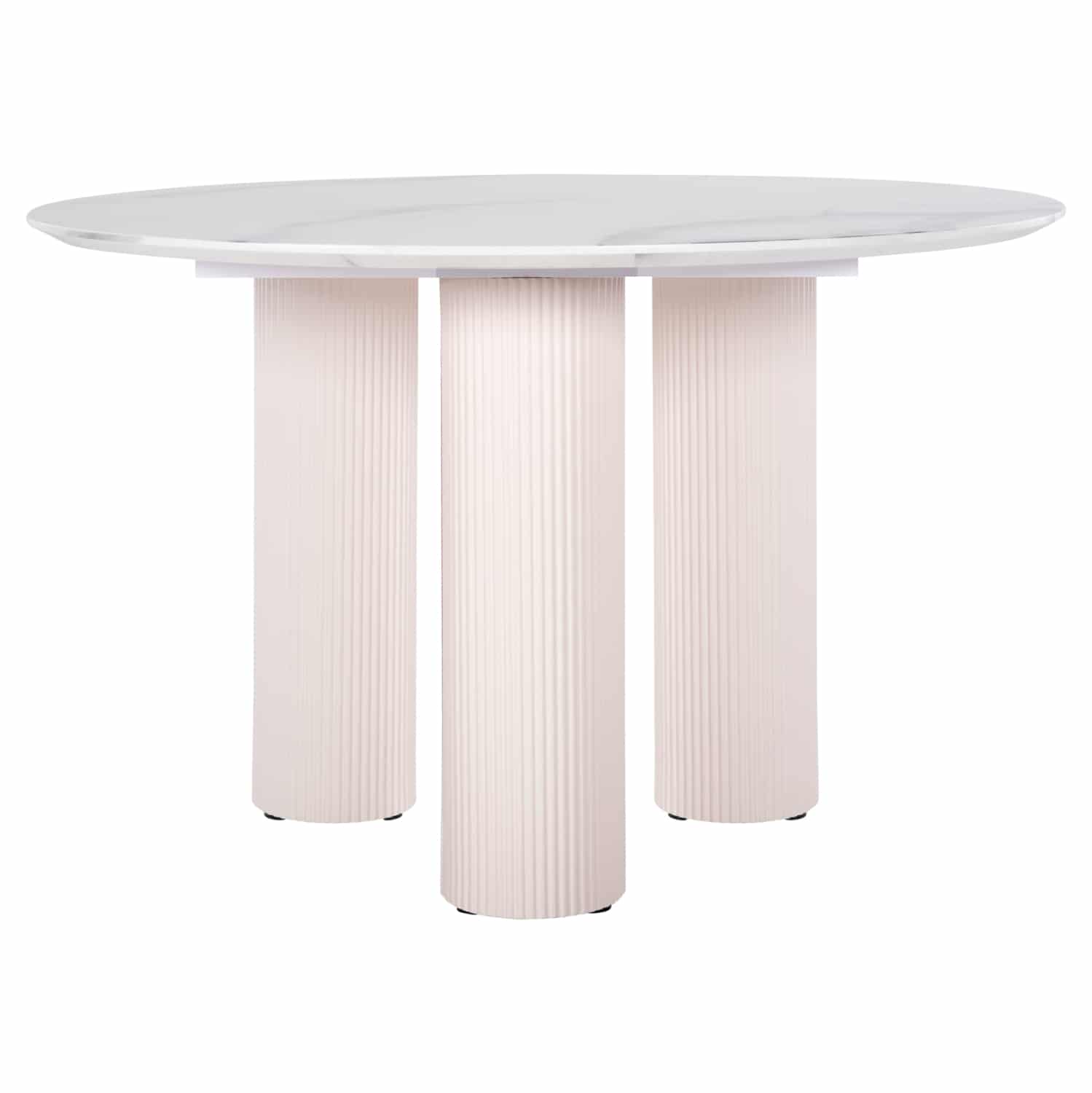 Το DORIK είναι ένα στρογγυλό τραπέζι για την τραπεζαρία, με επιφάνεια από MDF σε χρώμα ΛΕΥΚΟΥ ΜΑΡΜΑΡΟΥ. Τα 3 πόδια σε στυλ κολώνας είναι επίσης ΛΕΥΚΑ. Πρόκειται για ένα όμορφο τραπέζι σε ικανοποιητική διάσταση και ιδιαίτερα καλαίσθητο χρωματισμό, με αποτέλεσμα να μπορεί να ταιριάξει αισθητικά σχεδόν σε κάθε ανάλογο χώρο.