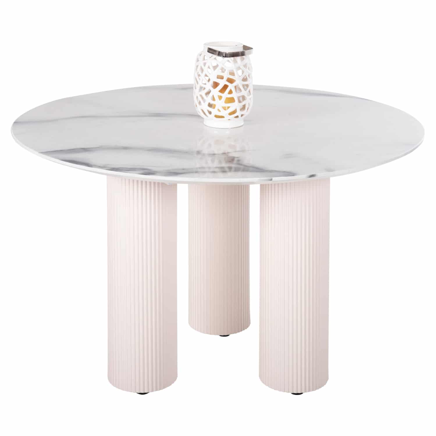 ΤΡΑΠΕΖΙ ΣΤΡΟΓΓΥΛΟ DORIK HM9768.01 MDF ΛΕΥΚΟ ΜΑΡΜΑΡΟ-MDF ΠΟΔΙΑ Φ120×77Υεκ.