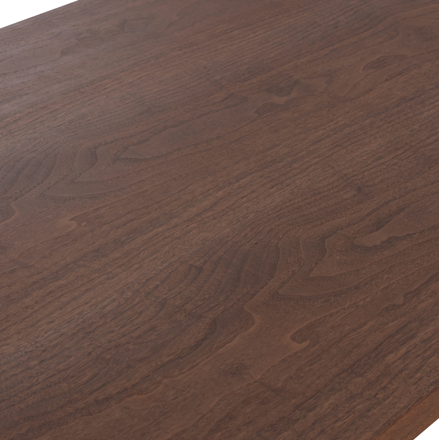 Η επιφάνεια του τραπεζιού είναι από MDF με καπλαμά καρυδιάς. Το MDF (Medium Density Fiber) είναι ένα σύγχρονο υλικό ευρείας κατανάλωσης το οποίο επιλέγεται πολύ συχνά κυρίως για τον χώρο της κουζίνας. Βασικά χαρακτηριστικά του είναι ότι απορροφά ελάχιστη υγρασία, παράγοντας σημαντικός για έναν χώρο όπως αυτός της κουζίνας, διαθέτει ομοιογένεια στην μάζα του, ικανοποιητικές μηχανικές ιδιότητες, εξαιρετική ομαλότητα και πολλές δυνατότητες επεξεργασίας.