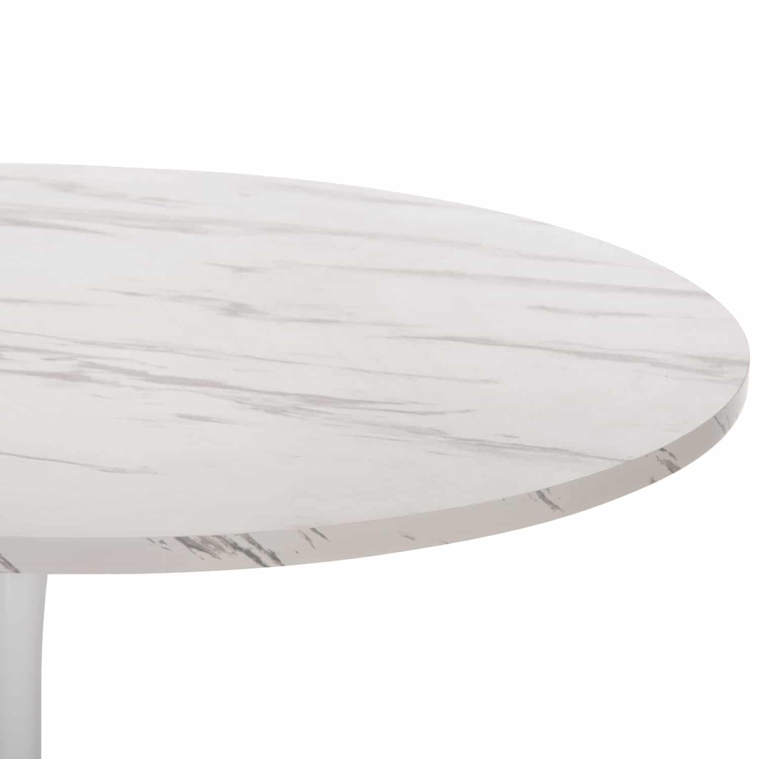 To ROLLO ένα μοντέρνο στρογγυλό τραπέζι για τραπεζαρία (ροτόντα δηλαδή), με επιφάνεια μελαμίνης σε ΑΣΠΡΟ ΜΑΡΜΑΡΟ χρώμα. Η επιφάνεια στηρίζεται σε μια μεταλλική ΛΕΥΚΗ κολώνα κυλινδρική η οποία έχει τις κατάλληλες διαστάσεις για να υποστηρίξει επαρκώς το τραπέζι. Τα τραπέζια ροτόντες είναι ιδιαιτέρως πρακτικά και όμορφα γιατί δεν έχουν κορυφές και «αρχηγούς», ούτε και γωνίες ή πόδια που, πολλές φορές, δημιουργούν άβολες καταστάσεις. Τέλος, η συγκεκριμένη ροτόντα είναι σε ικανοποιητική διάσταση πράγμα που την καθιστά σημείο αναφοράς για την τραπεζαρία σας.