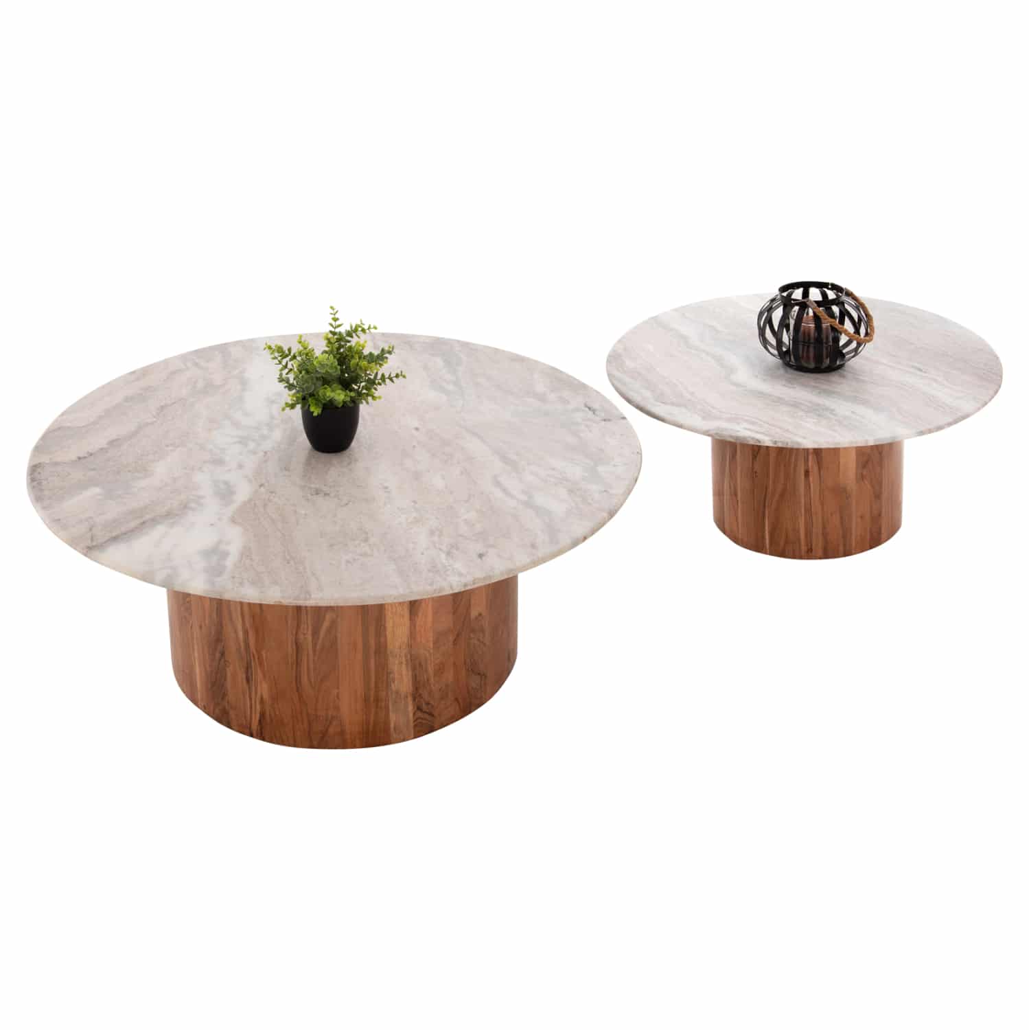 ΤΡΑΠΕΖΙA ΣΑΛΟΝΙΟΥ 2ΤΜΧ FORMEL HM11915 ΑΚΑΚΙΑ ΣΕ ΦΥΣΙΚΟ-ΛΕΥΚΟ ΜΑΡΜΑΡΟ Φ100 & Φ80 εκ. HM9671 HM9672