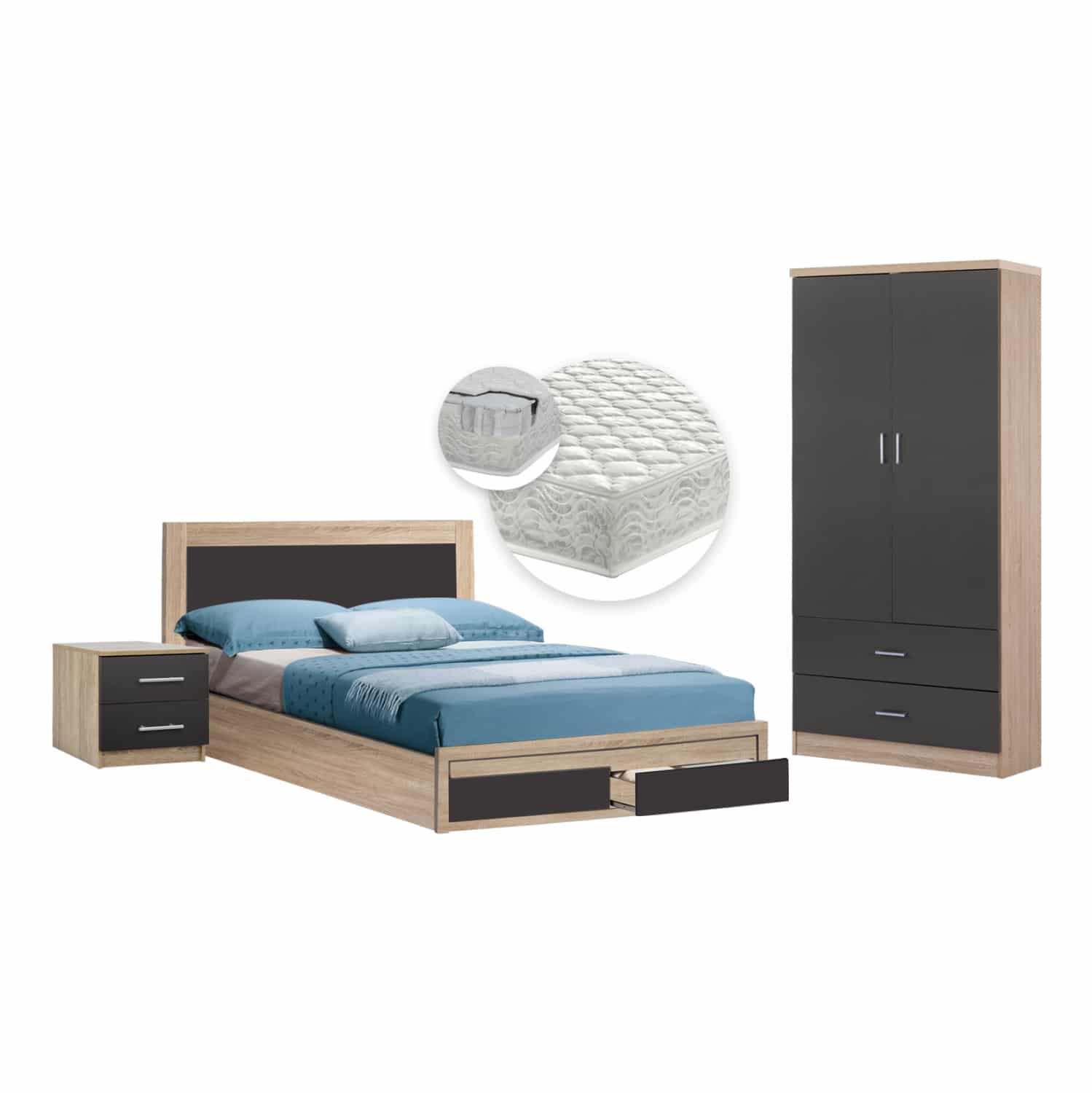Σετ 4 τμχ περιέχει κρεβάτι, κομοδίνο, ντουλάπα & στρώμα.