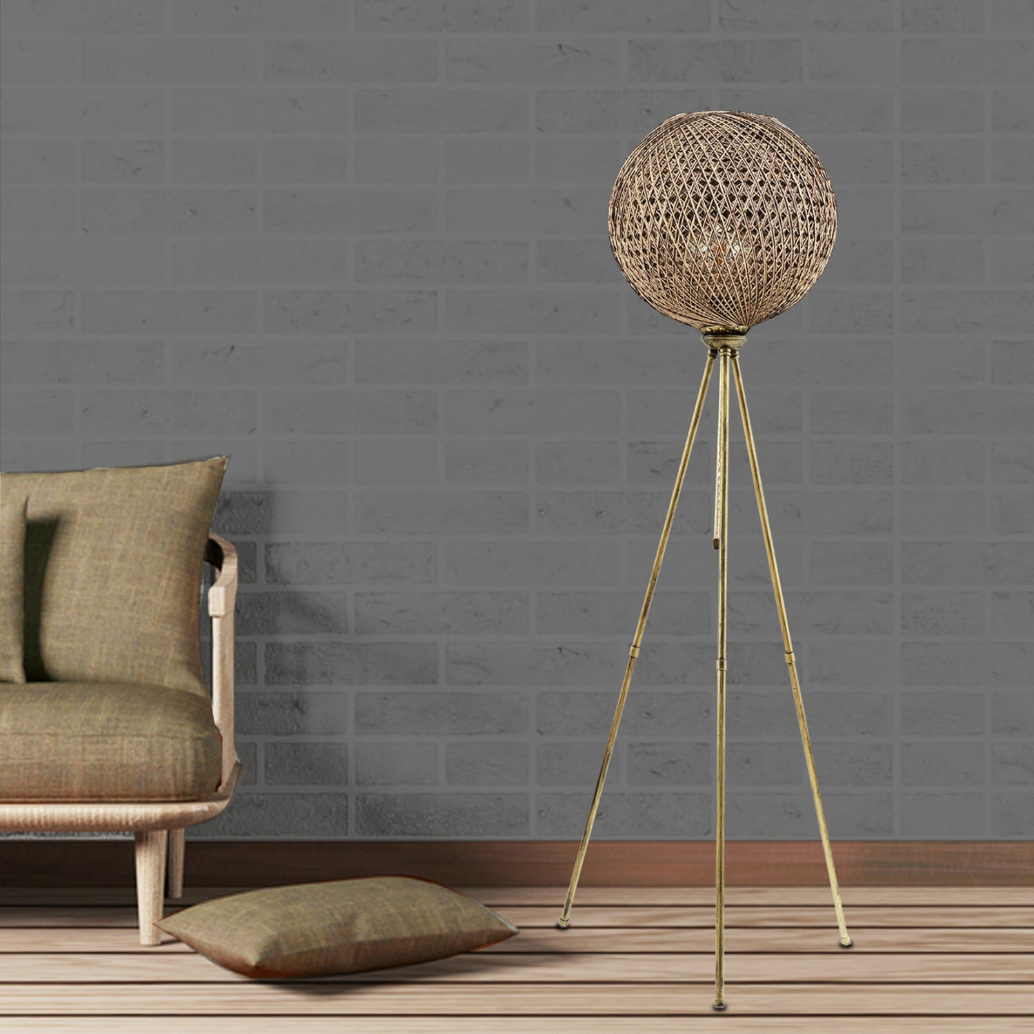 Φωτιστικό δαπέδου σε χρυσό με μπεζ απόχρωση.