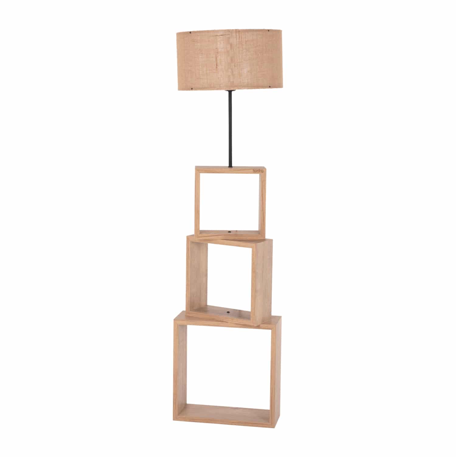 HM7608.03–Μοντέρνο φωτιστικό δαπέδου με 3 κύβους-ράφια σε ΣΟΝΑΜΑ χρώμα MDF, μαύρη κολώνα που συνδέει τα ράφια με το φωτιστικό και κυλινδρικό, ανοιχτό από πάνω, «καπέλο» σε ΜΠΕΖ χρώμα. Φοβερά εμπνευσμένη υλοποίηση που συνδυάζει την πρακτικότητα με το στυλ. Το ανοιχτό «καπέλο» εξασφαλίζει ότι το φως διαχέεται όμορφα στον χώρο δημιουργώντας όμορφη ατμόσφαιρα. Άλλωστε φως σημαίνει κάτι περισσότερο από ένα φωτιστικό. Σημαίνει διακόσμηση, ατμόσφαιρα, τέχνη, μεράκι, και φυσικά επιστήμη.