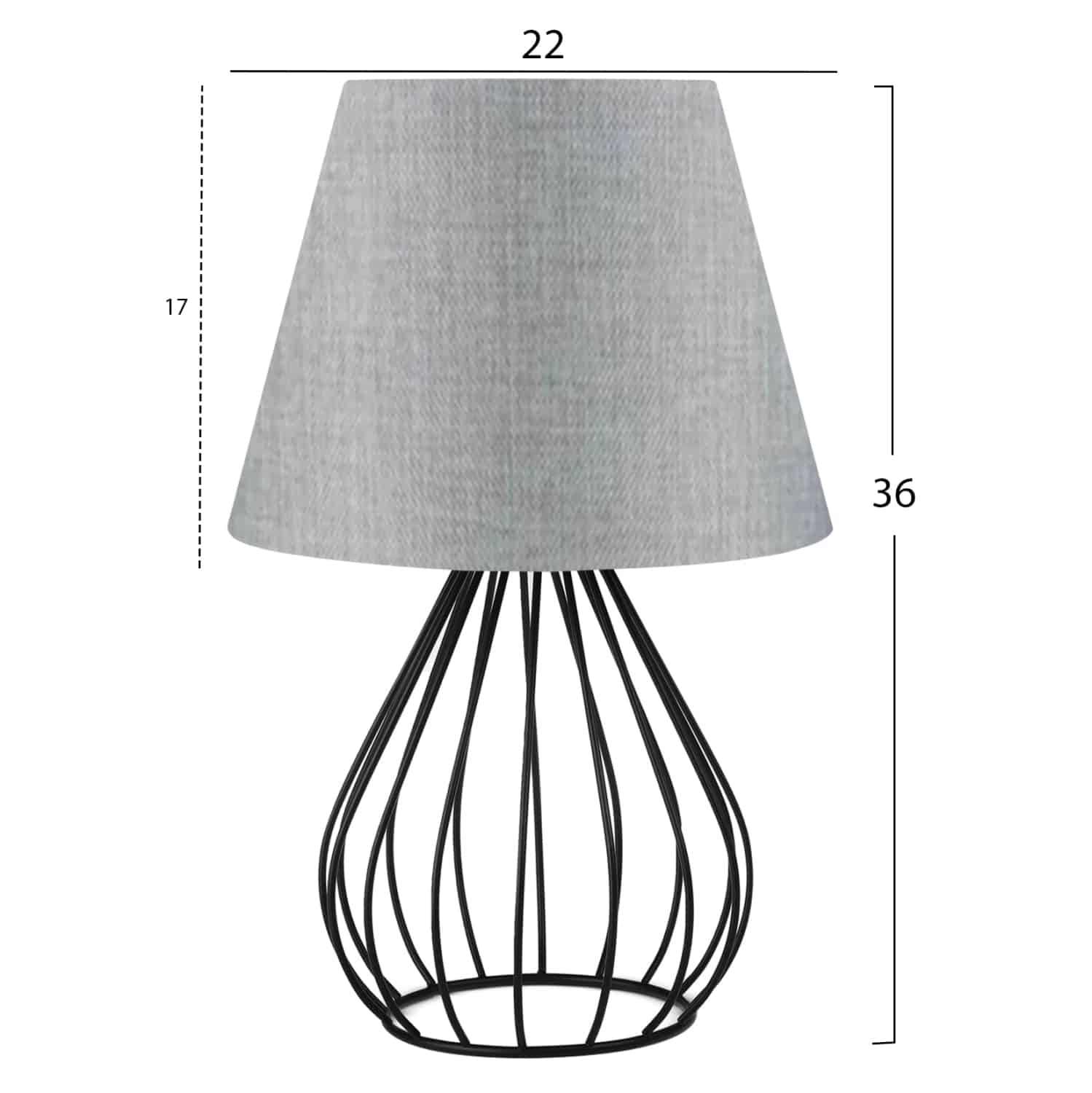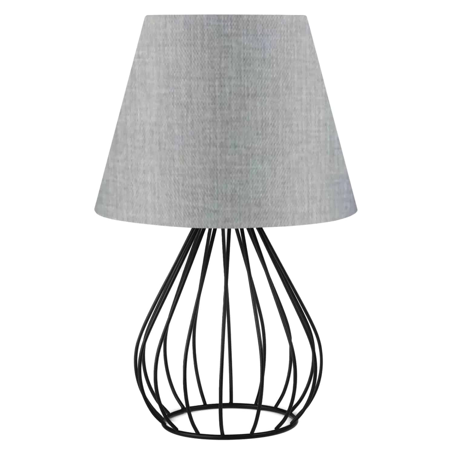 Φινέτσα και μοντέρνα γραμμή συναντώνται σε αυτό το επιτραπέζιο φωτιστικό. Βάση και κολώνα έχουν δώσει την θέση τους όμορφα σε ένα μαύρο μεταλλικό πλέγμα σε σχήμα δάκρυ και στην κορυφή του κάθεται το γκρι τραπεζοειδές καπέλο, δημιουργώντας ένα σύνολο που είναι η επιτομή του μοντέρνου design εσωτερικών χώρων.