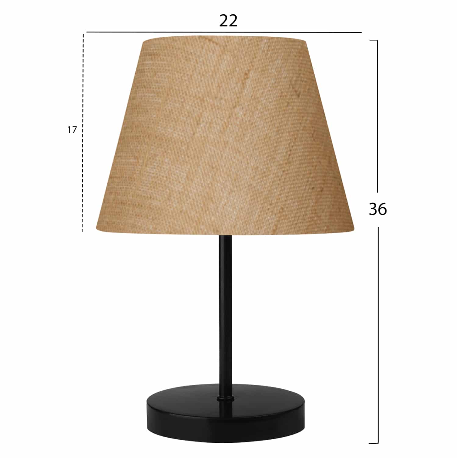 Πρόκειται για ένα λιτό επιτραπέζιο διακοσμητικό φωτιστικό. Το «καπέλο» του φωτιστικού έχει σχήμα ανοιχτής καμπάνας (τραπεζοειδές) σε χρώμα μπεζ της άμμου, ενώ η βάση στήριξης είναι μαύρη και κυκλική. Ένα λιτό και κομψό επιτραπέζιο φωτιστικό που διαχέει γλυκά το φως και δημιουργεί την ατμόσφαιρα που πάντα φανταζόσασταν για τον χώρο σας, έτσι ώστε να φτιάξετε την δική σας γωνιά χαλάρωσης ή ακόμα και διακόσμησης. Διότι το φως, σημαίνει κάτι περισσότερο από ένα φωτιστικό. Σημαίνει διακόσμηση, ατμόσφαιρα, τέχνη, μεράκι, και φυσικά επιστήμη.