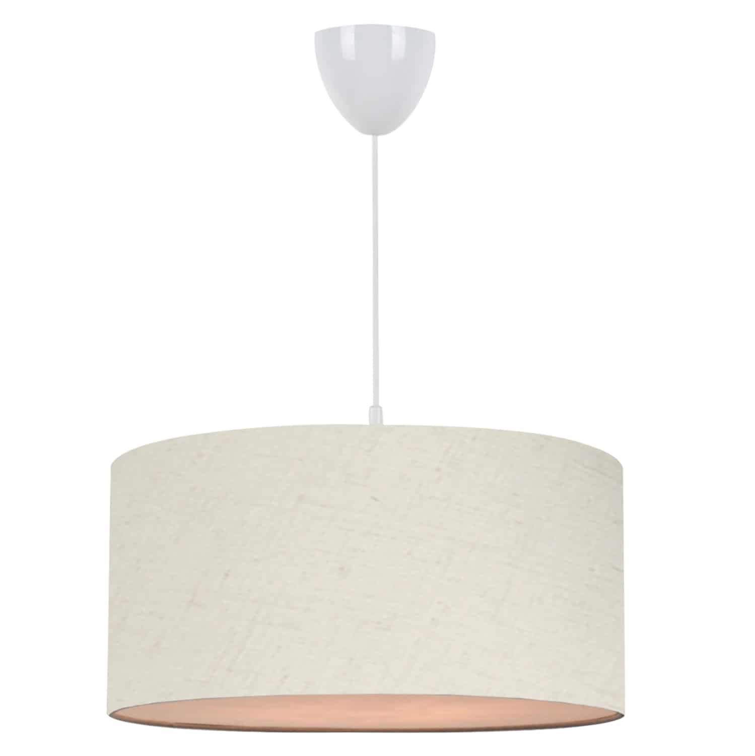 Είτε είναι μέρα, είτε νύχτα, είτε είναι αναμμένο ή σβηστό, το κρεμαστό μονόφωτο φωτιστικό με υφασμάτινο «τύμπανο» προσφέρει στον χώρο σας στιγμιαία στυλιστική αναβάθμιση. Εκεί που νομίζατε ότι η αγάπη μας και η δική σας για οτιδήποτε υφασμάτινο δεν μπορούσε να φτάσει σε νέα σύνορα, ήρθαν αυτά τα φωτιστικά οροφής. Η υφή του υφάσματος μπορεί να είναι λίγο ασυνήθιστη για κρεμαστό φωτιστικό, αλλά χάρη στην λευκή εσωτερική του επιφάνεια, δίνει στο φως μια απαλή λάμψη. Το εκρού χρώμα του «τύμπανου» πραγματικά δίνει την εντύπωση της πολυτέλειας χωρίς όριο.
