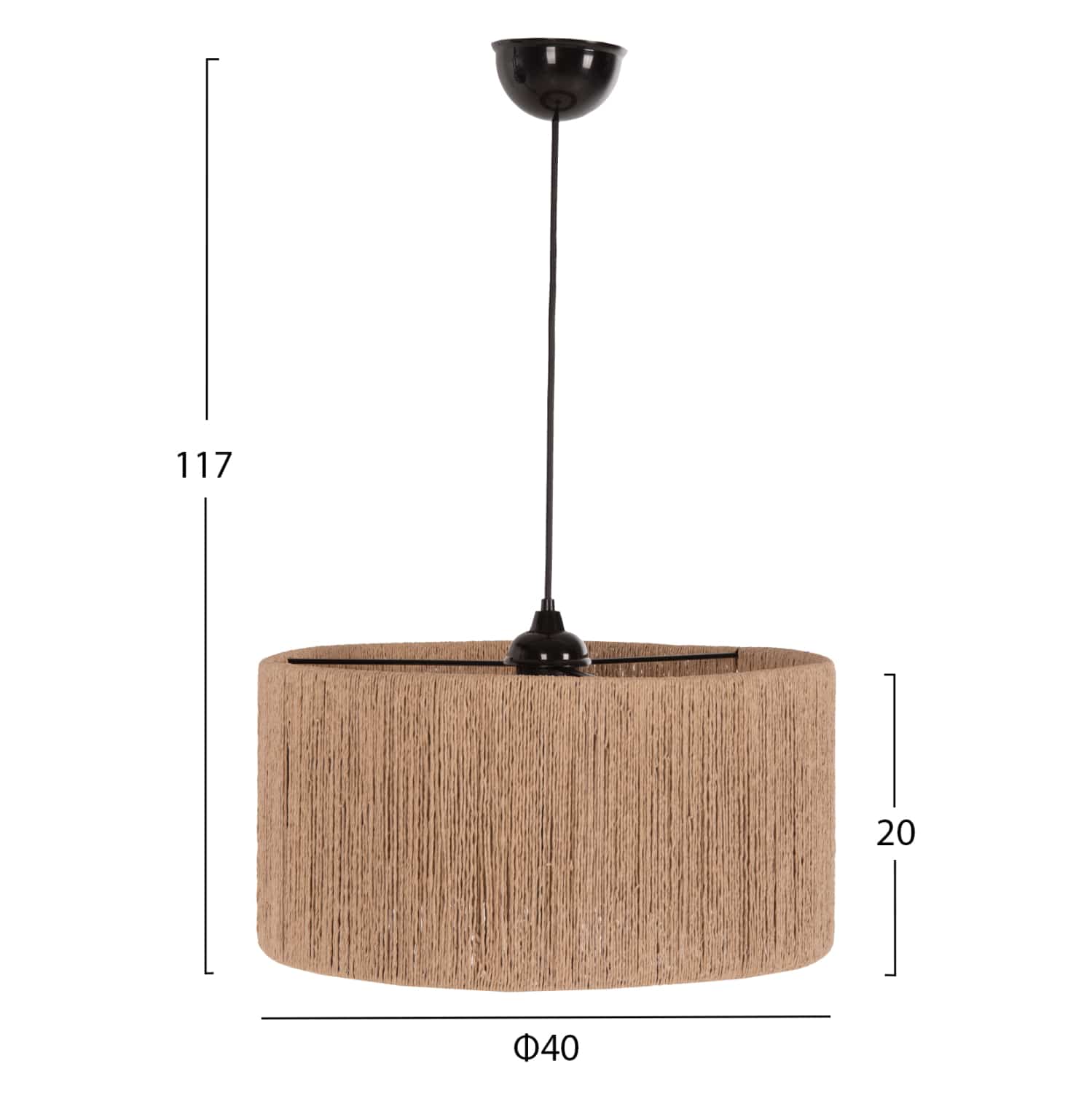 Αφήστε το φως να απλωθεί στον χώρο με ένα πρωτότυπο και φινετσάτο χειροποίητο μονόφωτο οροφής, ολοκληρώνοντας την διακόσμησή σας. Το κυλινδρικό «καπέλο» του φωτιστικού αποτελείται από μεταλλικό σκελετό επενδυμένο με επεξεργασμένο στρογγυλό paper rope σε ΦΥΣΙΚΟ χρώμα ειδικό για φωτιστικά, και είναι η επιτομή του μοντέρνου design.