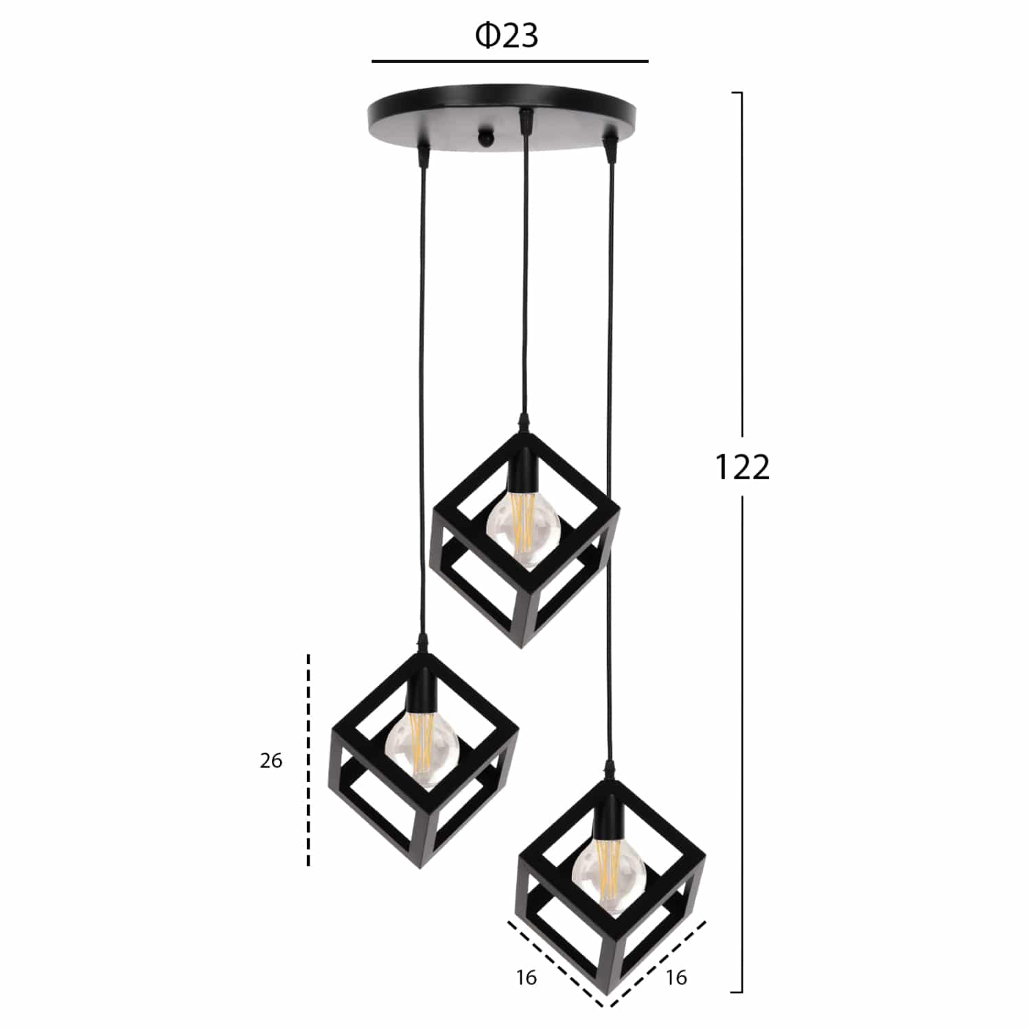 ΦΩΤΙΣΤΙΚΟ ΟΡΟΦΗΣ ΚΡΕΜΑΣΤΟ HM4036 3 ΚΥΒΟΙ ΜΑΥΡΟ ΜΕΤΑΛΛΟ Φ23x122Yεκ. HM4036