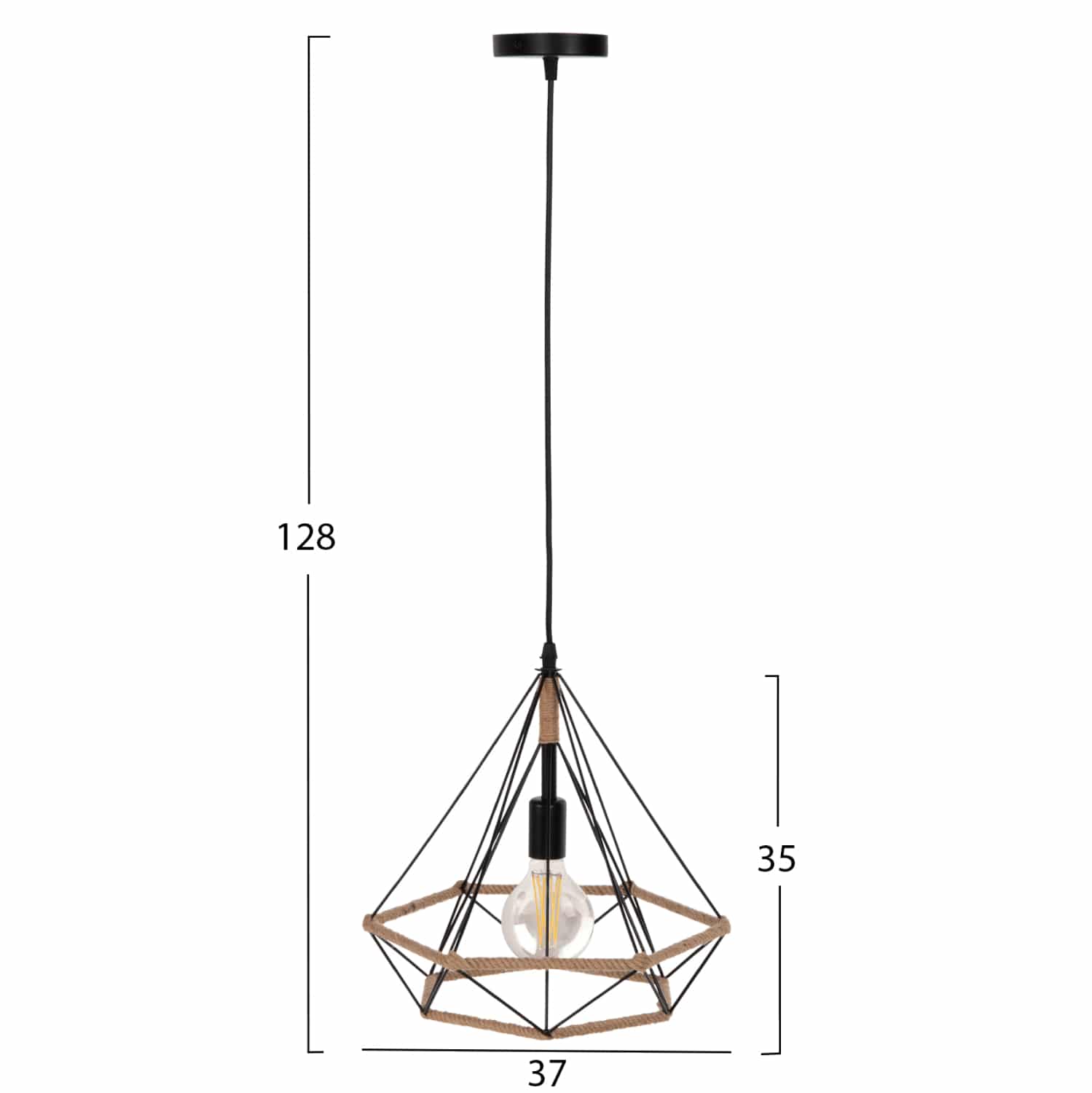 Αφήστε το φως να απλωθεί στον χώρο με ένα πρωτότυπο και φινετσάτο κρεμαστό μονόφωτο οροφής, ολοκληρώνοντας την διακόσμησή σας. Το σχήμα διαμαντιού με ΜΑΥΡΕΣ μεταλλικές ράβδους και σχοινί, είναι η επιτομή του μοντέρνου design.
