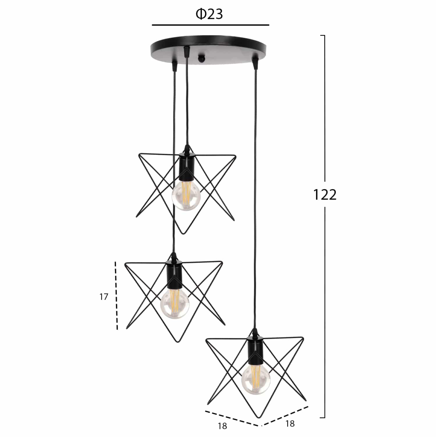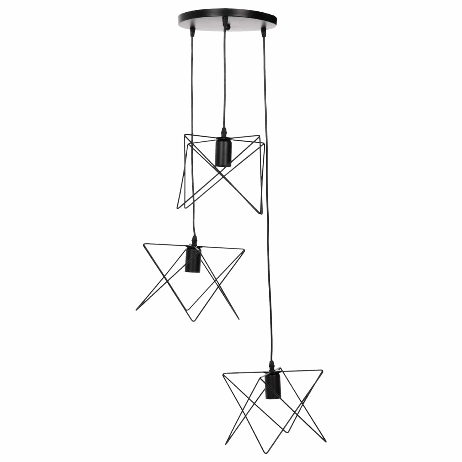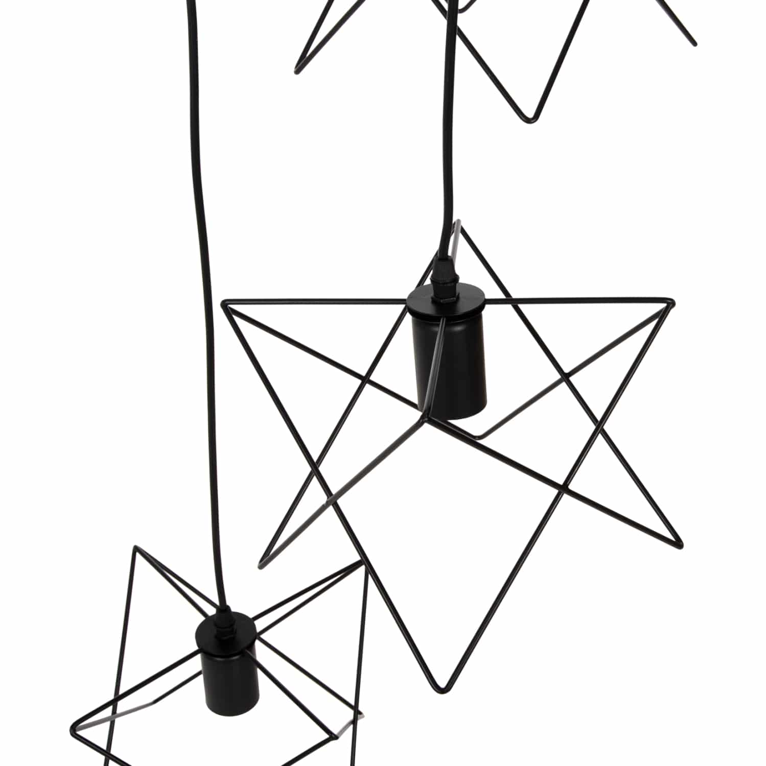 Αφήστε το φως να απλωθεί στον χώρο με ένα πρωτότυπο και φινετσάτο κρεμαστό 3-φωτο οροφής, ολοκληρώνοντας την διακόσμησή σας. Το σχήμα αστεριού με ΜΑΥΡΕΣ μεταλλικές ράβδους σε 3 διαφορετικά ύψη, είναι η επιτομή του μοντέρνου design.
