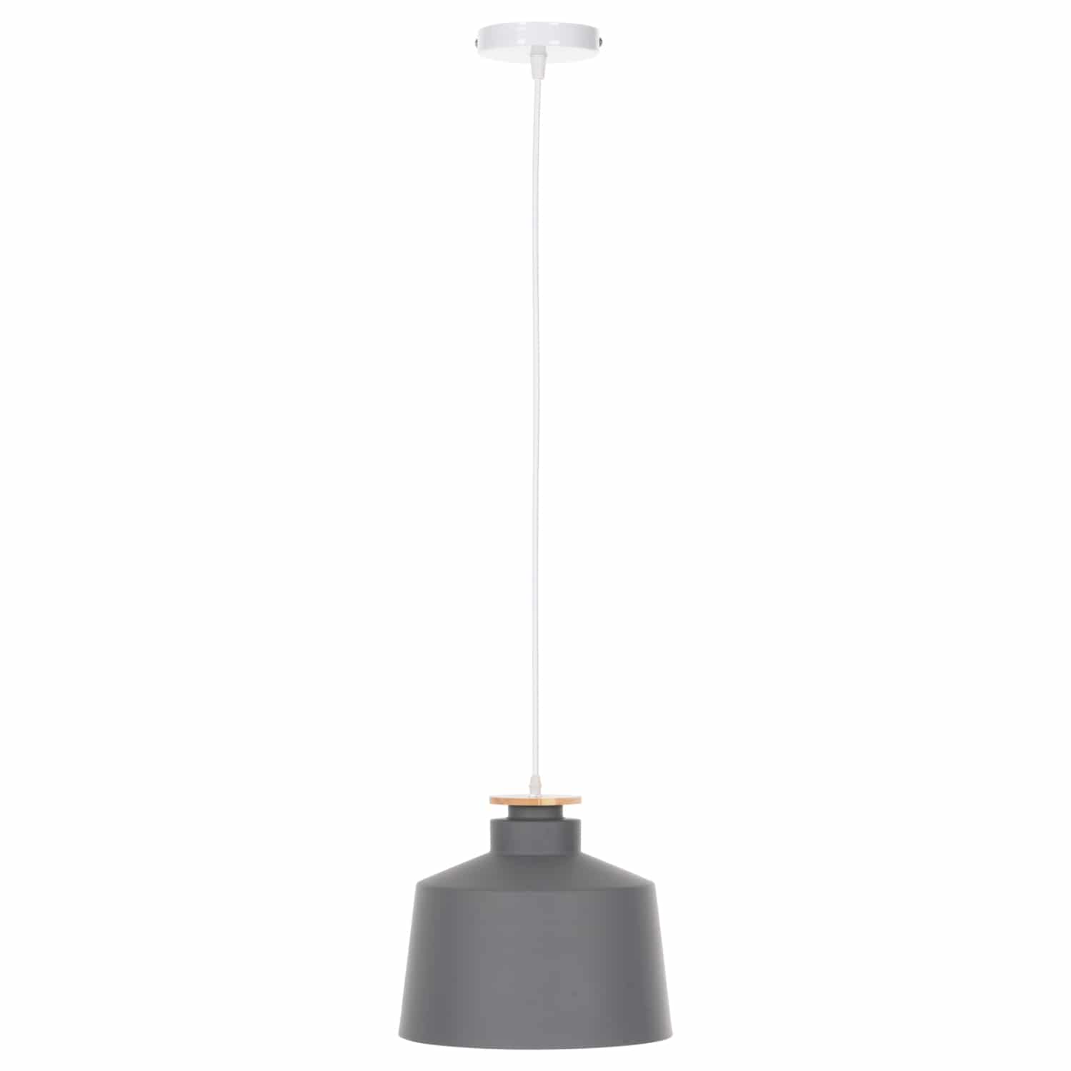 Ανακαλύψτε αυτό το νέο μας κρεμαστό φωτιστικό οροφής και ολοκληρώστε την διακόσμησή σας. Πρόκειται για ένα φωτιστικό με ΓΚΡΙ καπέλο ΑΛΟΥΜΙΝΙΟΥ σε σχήμα καμπάνας με λεπτομέρεια ξύλου στην κορυφή του φωτιστικού. Αισθητικά, ολοκληρώνεται με το λευκό καλώδιο κρέμασης και την λευκή βάση οροφής, και αποτελεί την τελευταία τάση στα φωτιστικά οροφής.
